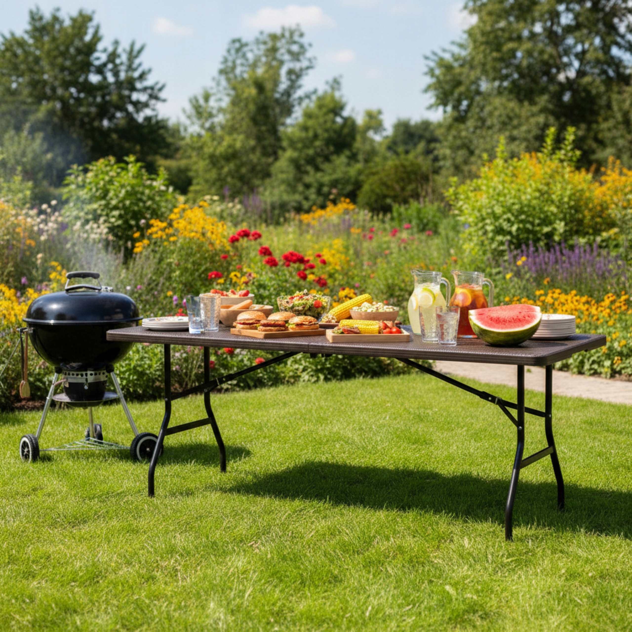 Стол оснащен поверхностью, защищенной от влаги и затопления, что делает его идеальным для как в помещении, так и на открытом воздухе.