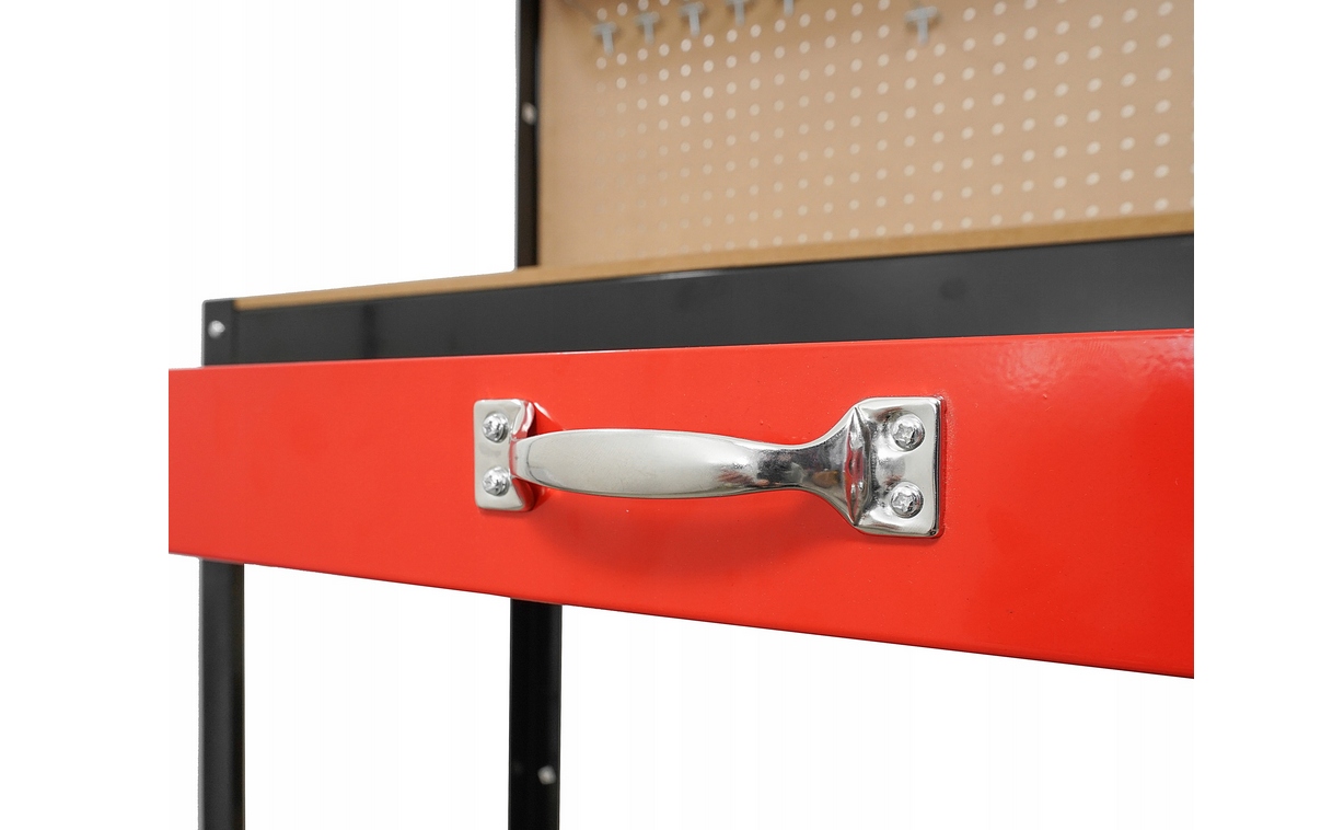 нижняя и верхняя полка и дополнительная перфорированная доска инструментов с 10 крючками позволяют любые расположение и обслуживание в мастерской. Максимальная нагрузка доски составляет 20 кг.