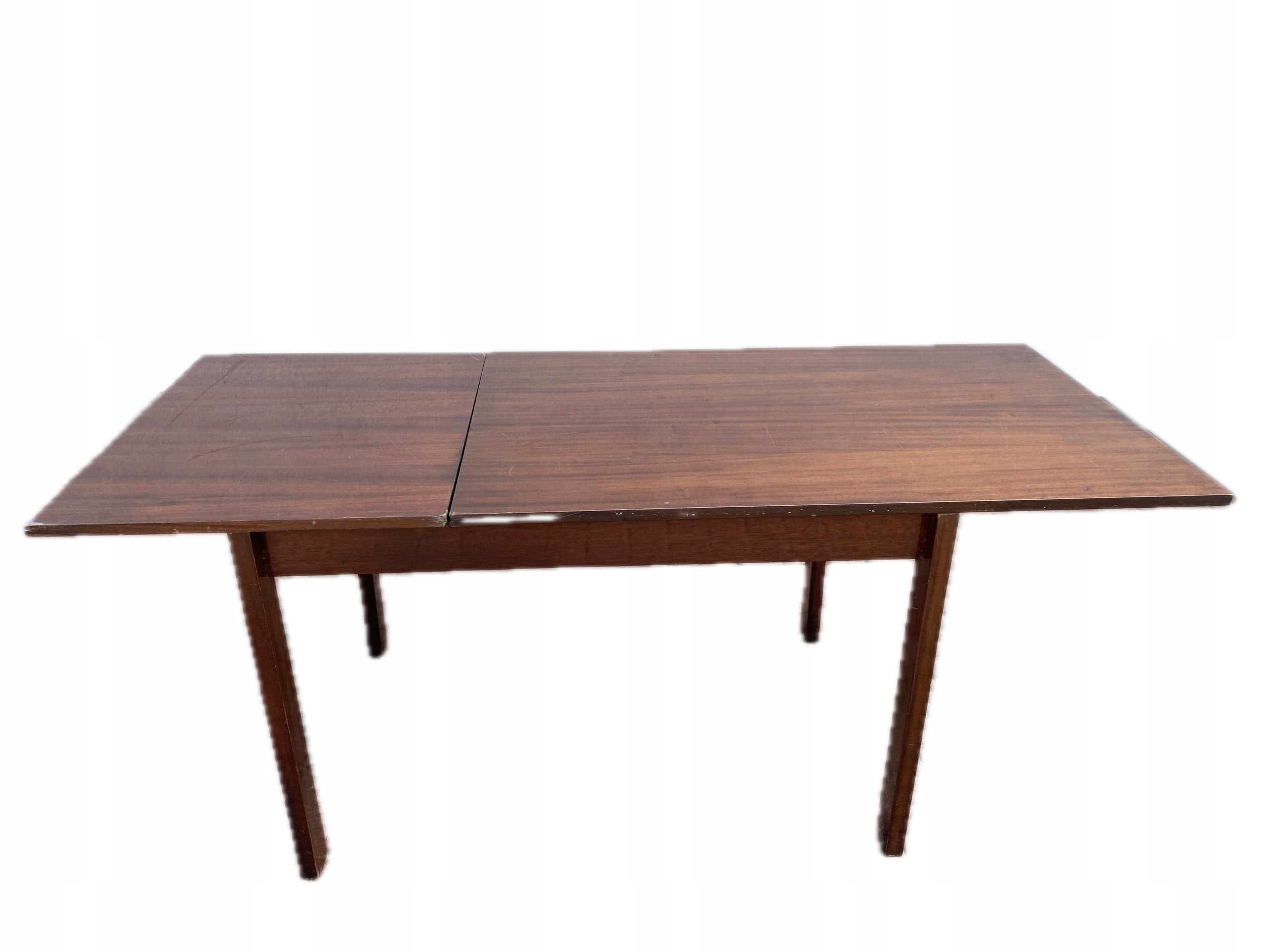 Раздвижной стол из набора «Влоцлавек», тип 1300-1, производства Włocławskie Fabryki Mebli 1970-1980-х годов. Стол изготовлен из сосны, шпонирован мореным красным деревом. Следы эксплуатации, требуется ремонт. Размеры: высота 75 х 75 х длина 120 см (в разложенном виде 180 см). Рекомендую коллекционерам