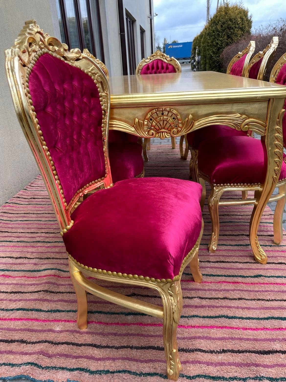 СТІЛ З 8 СТІЛЬЦЯМИ ГАРНИЙ НАБІР ЗОЛОТОГО БАРОКО
