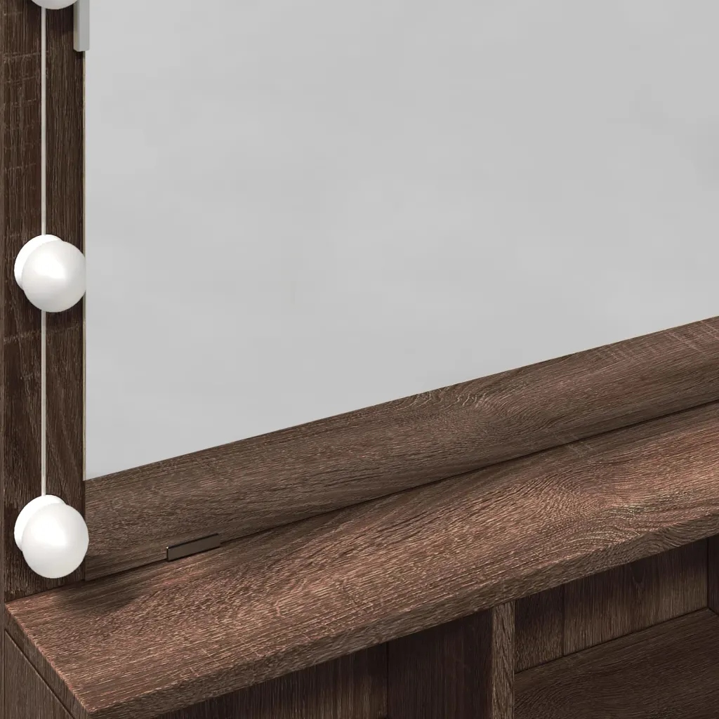 Стол с зеркальным туалетным столиком со светодиодным освещением, коричневым дубом, 80x41x134,5 см.