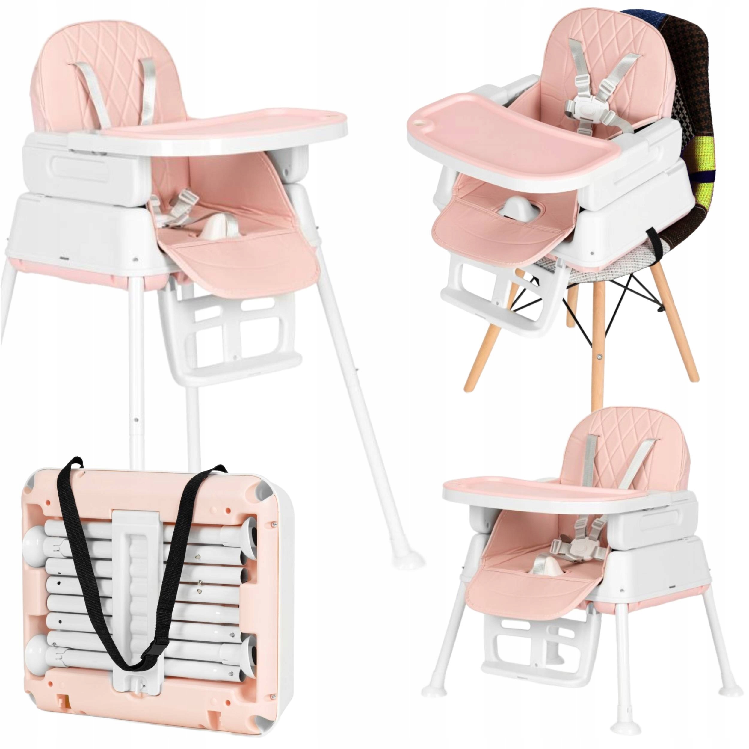Стульчик для кормления 3 в 1, металлические ножки, удобный поднос с ремнями для сиденья, розовый