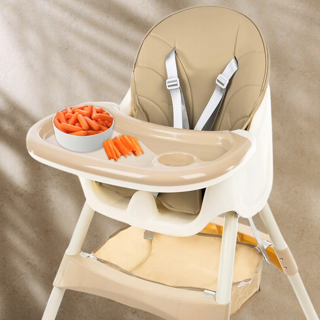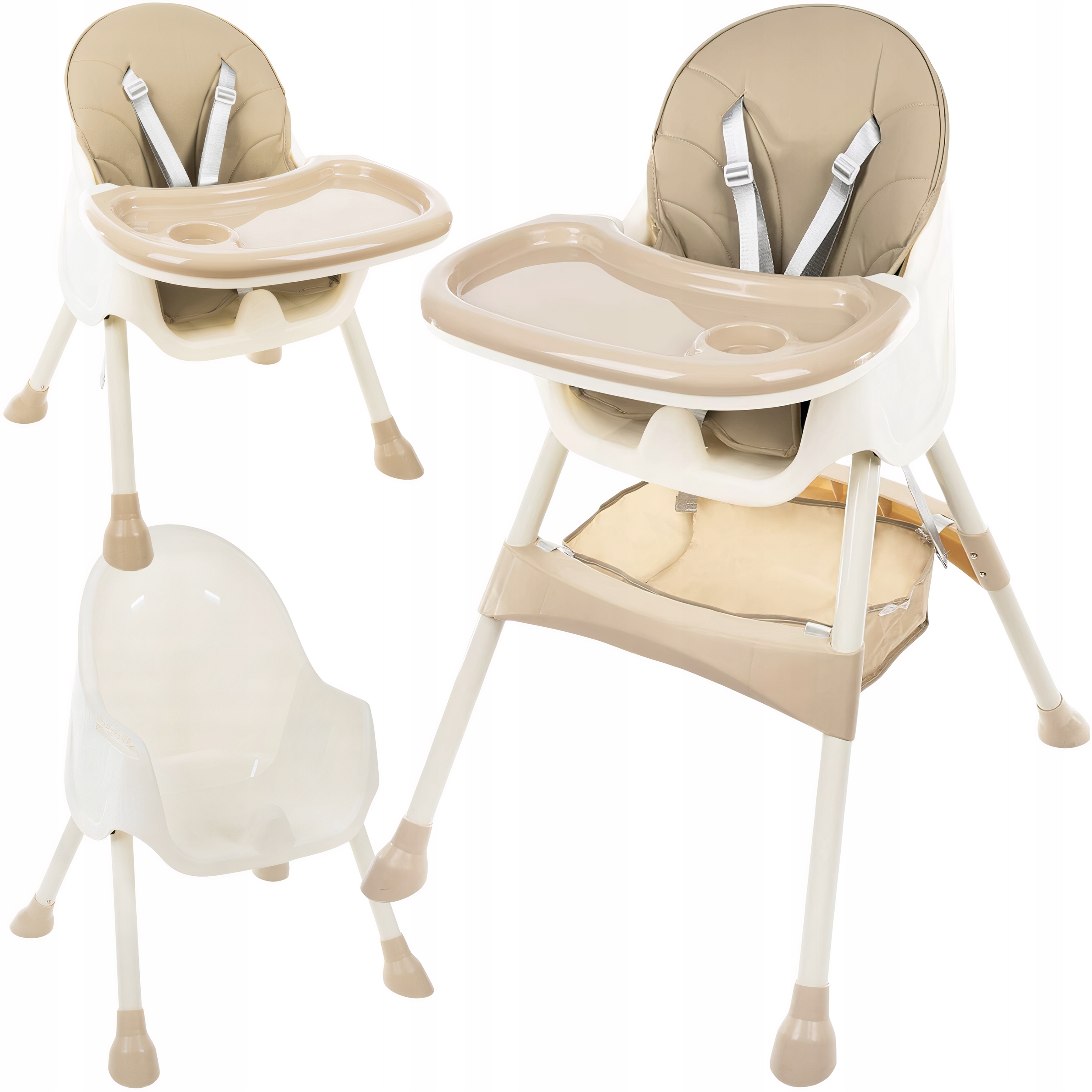Стульчик 3в1 — идеальное решение для ежедневного питания вашего ребенка. Кресло легкое, мягкое и удобное в использовании. Стул подходит, когда ребенку исполнилось 6 месяцев. Имеет съемную обивку из практичной экокожи, которая легко чистится и удобна в использовании. Столешница имеет 3 уровня регулировки расстояния и съемный поднос. Дополнительное преимущество: 4 нескользящие ножки с соответствующим расстоянием между ними, обеспечивающие устойчивость стула. Дополнительный профилированный элемент безопасности между ножками, предотвращающий выскальзывание ребенка из кресла