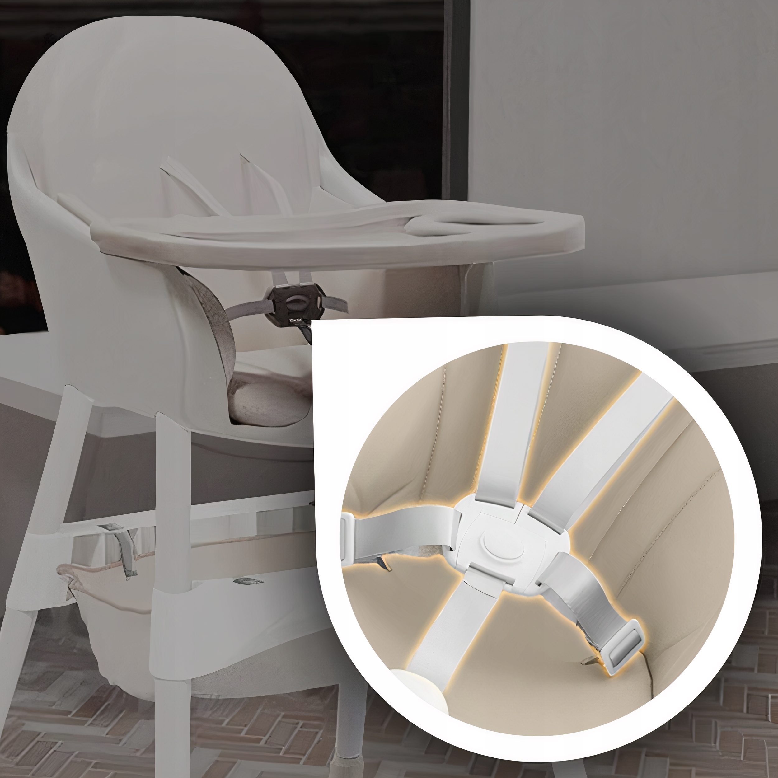Благодаря 5-точечному ремню вы можете обеспечить безопасность вашего ребенка безопасность не ограничивая его движений. Стульчик для кормления был разработан с учетом безопасности и комфорта вас и вашего ребенка! Он адаптируется к возрасту, потребностям и навыкам ребенка.