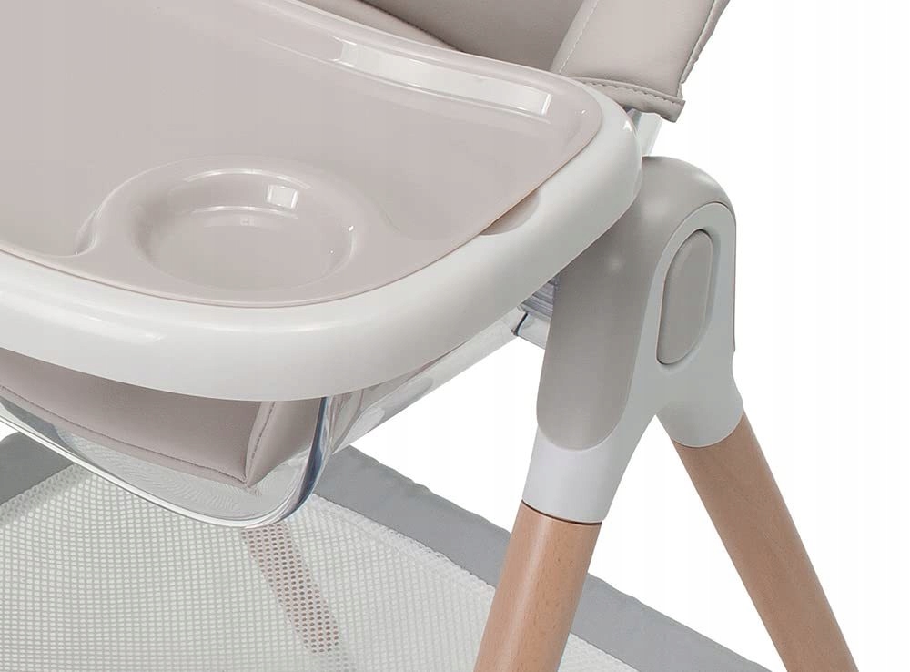 Misterchef имеет четыре положения по высоте, регулируемую спинку (3 положения), а также регулируемую подставку для ног и поднос.