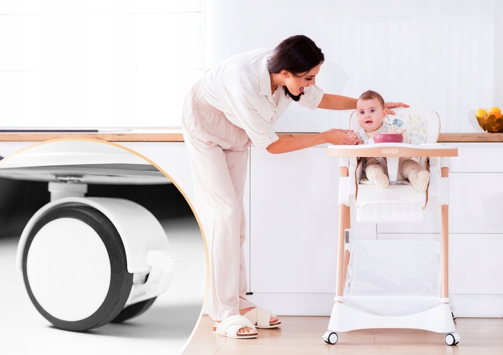 Мобильное многофункциональное кресло, несомненно, пригодится вам в ежедневном уходе за ребенком. Благодаря прикрепленным снизу колесикам их можно легко переместить в другую комнату. Если вы хотите усадить ребенка за стол или просто присмотреть за ним во время выполнения повседневных дел, воспользуйтесь замком.