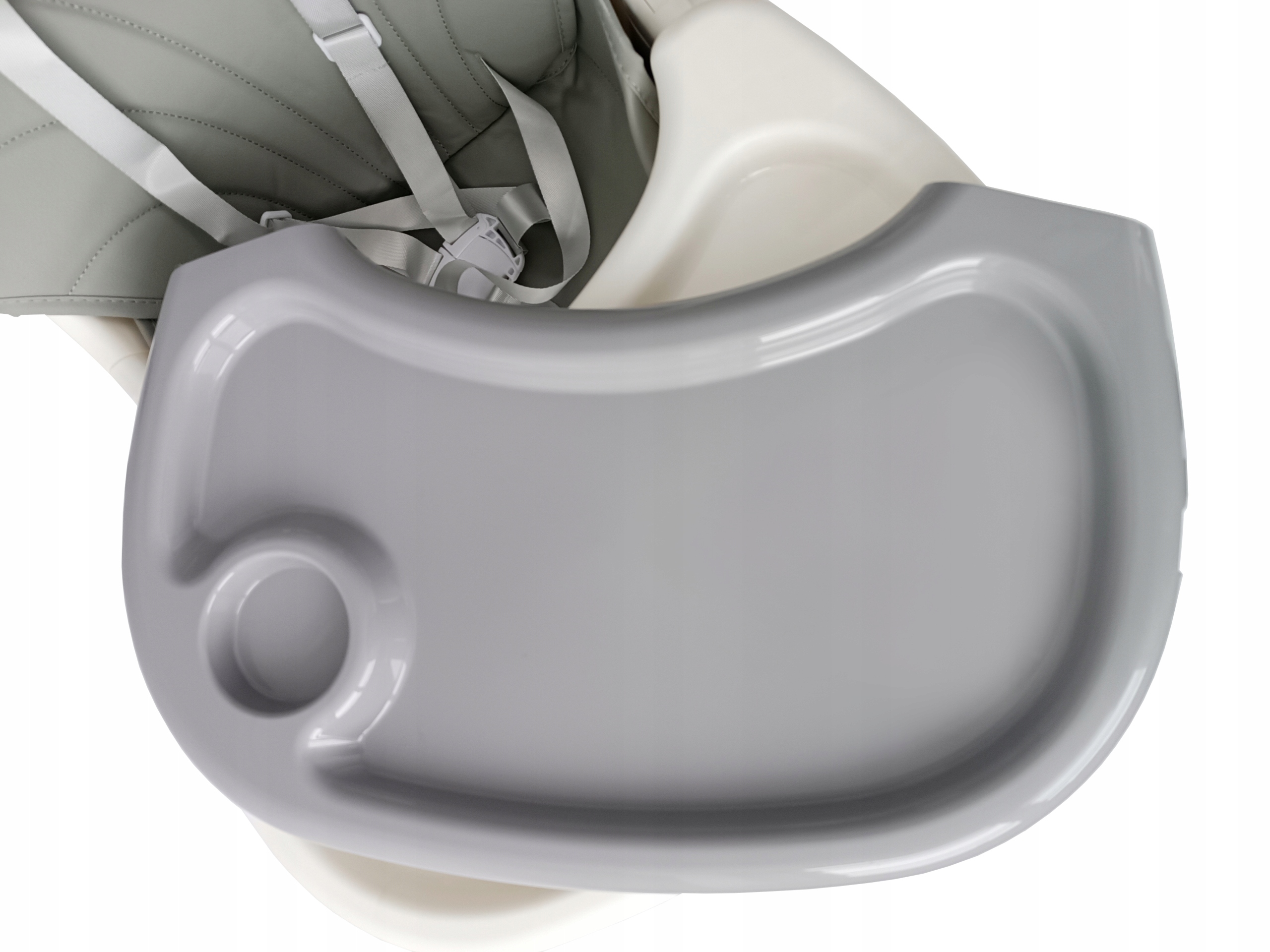 На столе вы можете поставить поднос, например, для еды. Поднос имеет углубление для чашки/бутылки и легко чистится. Приподнятые края подноса предотвращают проливание продуктов на пол.