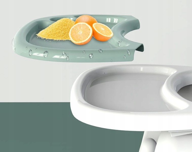 Стул оснащен практичным и регулируемым подносом, который поможет вам подавать еду и поддерживать чистоту.