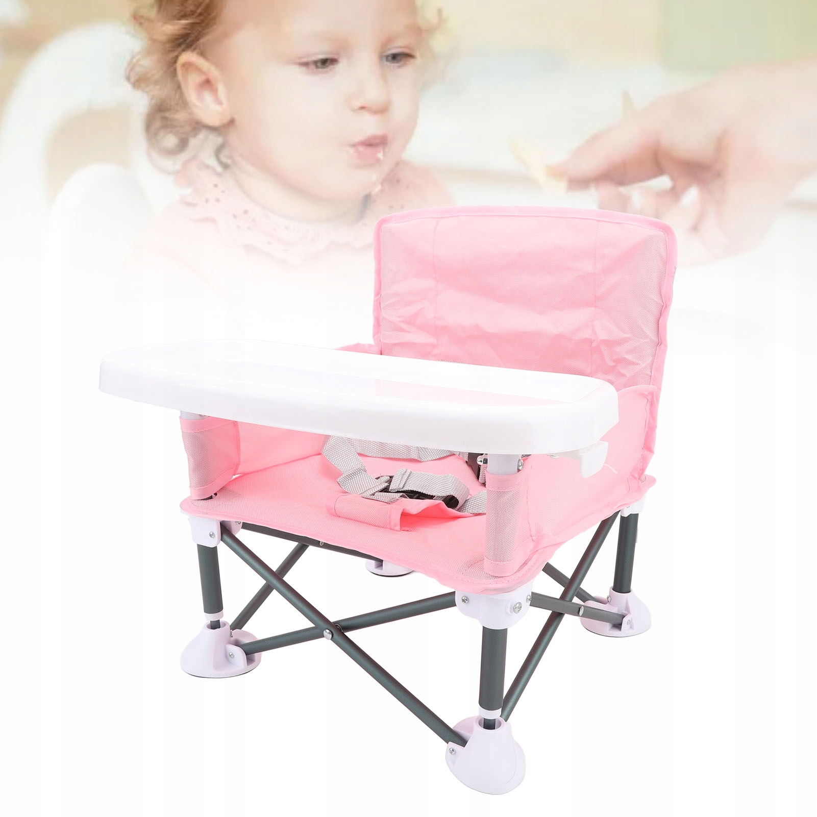 ДЕТСКИЙ СТУЛЬЧИК ДЛЯ КОРМЛЕНИЯ, СКЛАДНОЙ ПОДНОС, РОЗОВЫЙ