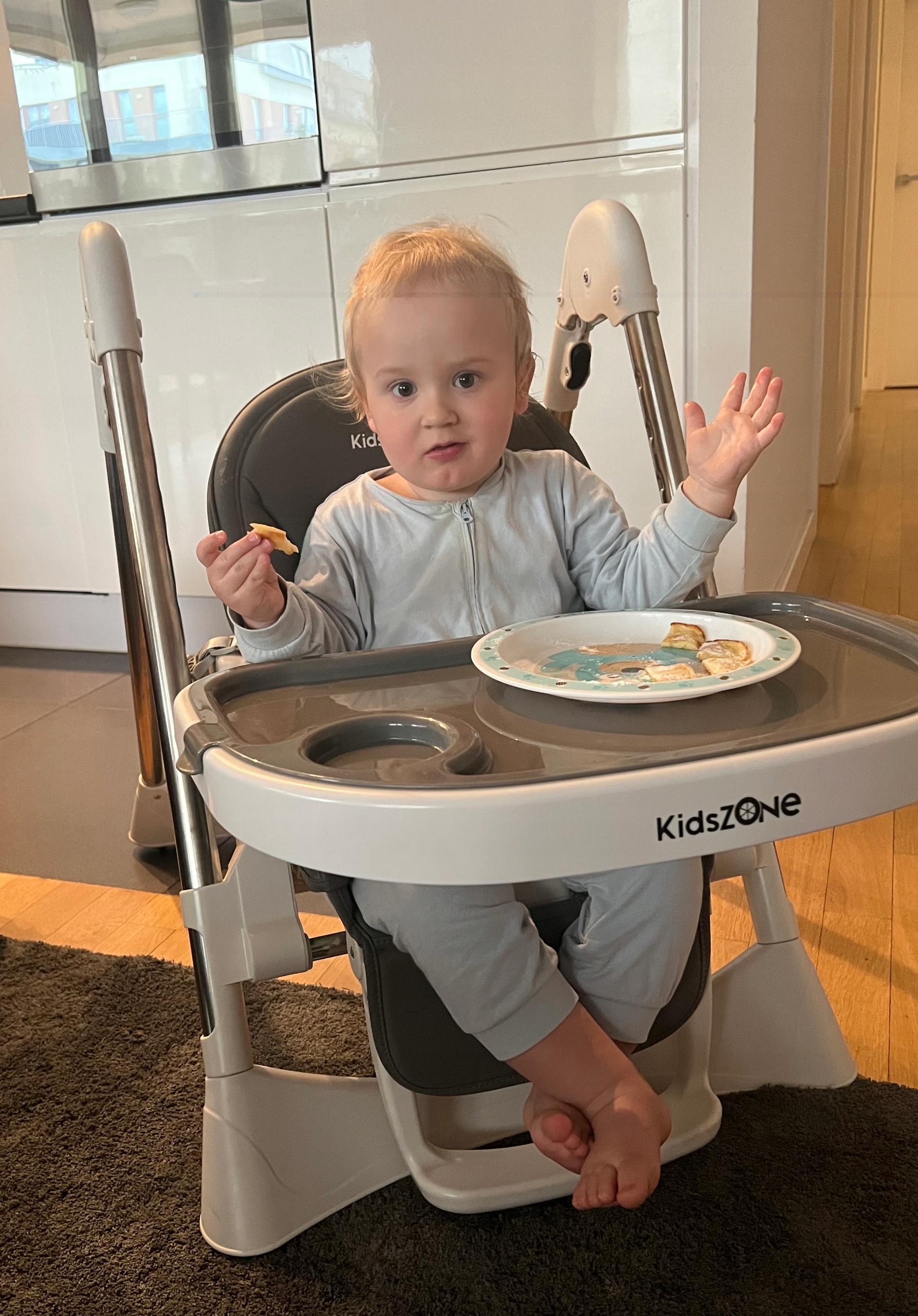 Стульчик для кормления Kids Zone предлагает все функции и качество. Он сверхлегкий и многофункциональный, растет вместе с вашим ребенком, от рождения до 5-6 лет. В течение первых нескольких месяцев стульчик можно использовать как удобный и расслабляющий шезлонг. Его использовали в качестве стульчика для кормления и игр с 6-месячного возраста. Позже, без подноса, идеально подходит для обеда с родителями. Однако сиденьем для ребенка постарше послужит максимально опущенный стул без подноса.
