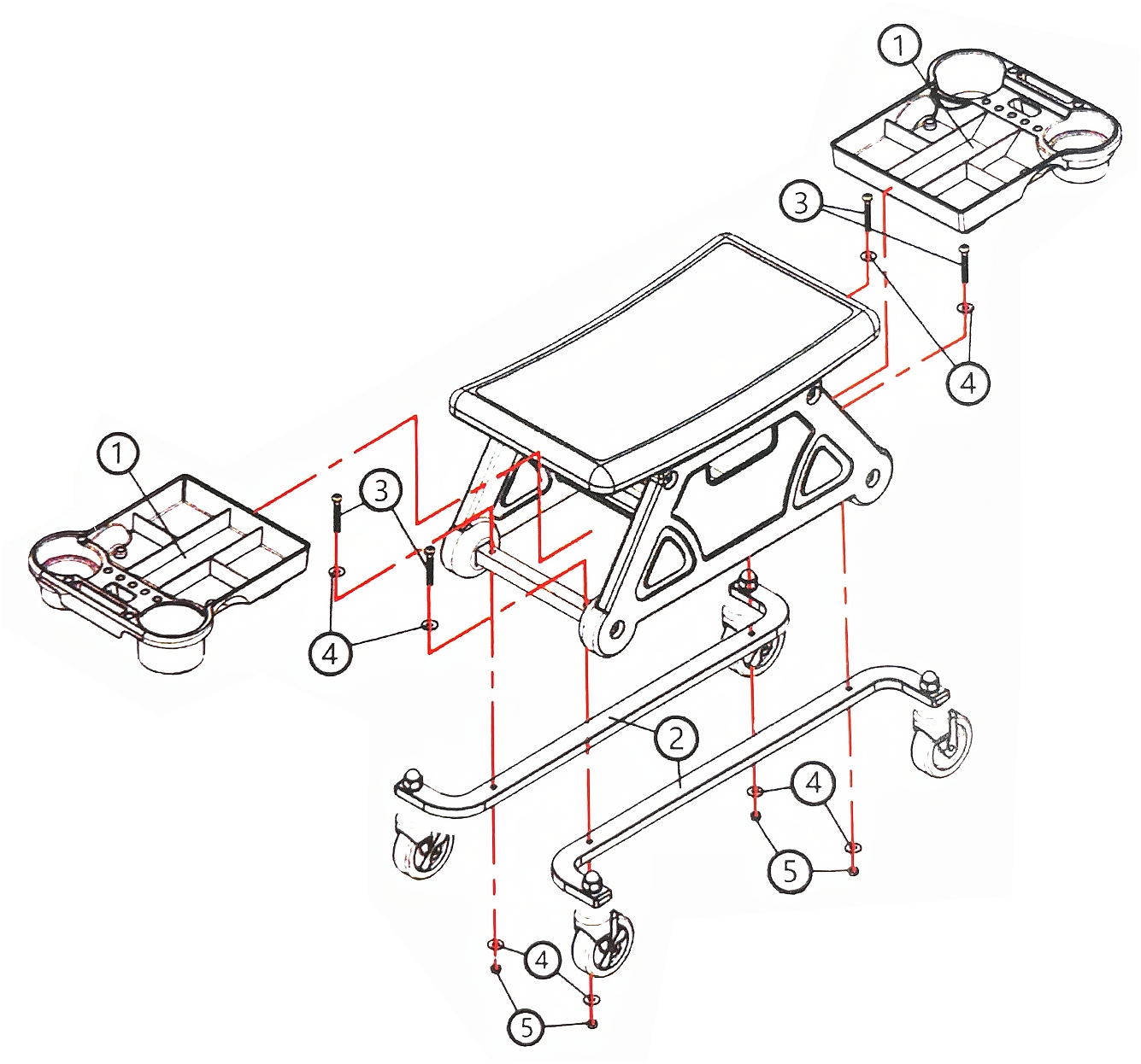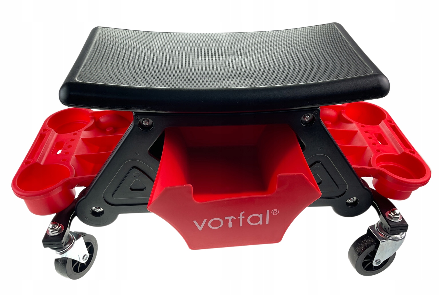 - Ящик под сиденьем и две боковые полки очень практичны для хранения инструментов, мелких деталей и до 4 банок с жидкостью (моющее средство или напитки).