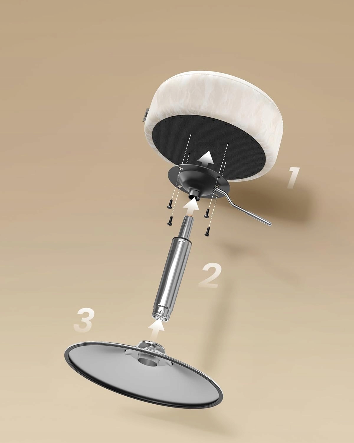 ❤️ Регулируемая высота и вращение на 360° - легко подогнать табурет к столешнице или зеркалу - высоту можно установить в диапазоне 44-60 см, сиденье свободно вращается.