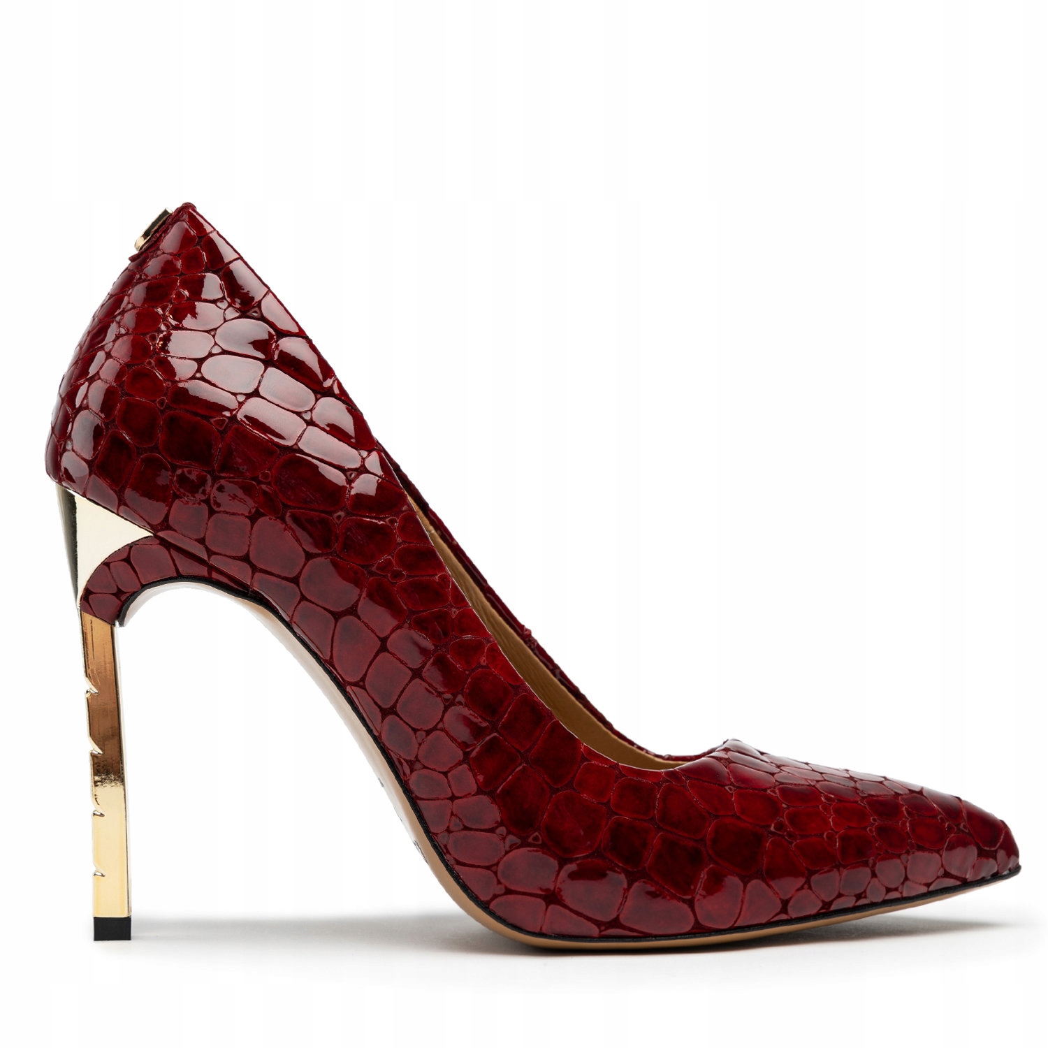 На представленном аукционе вы приобретаете 808 бордовых туфель на высоком каблуке из крокодиловой кожи.