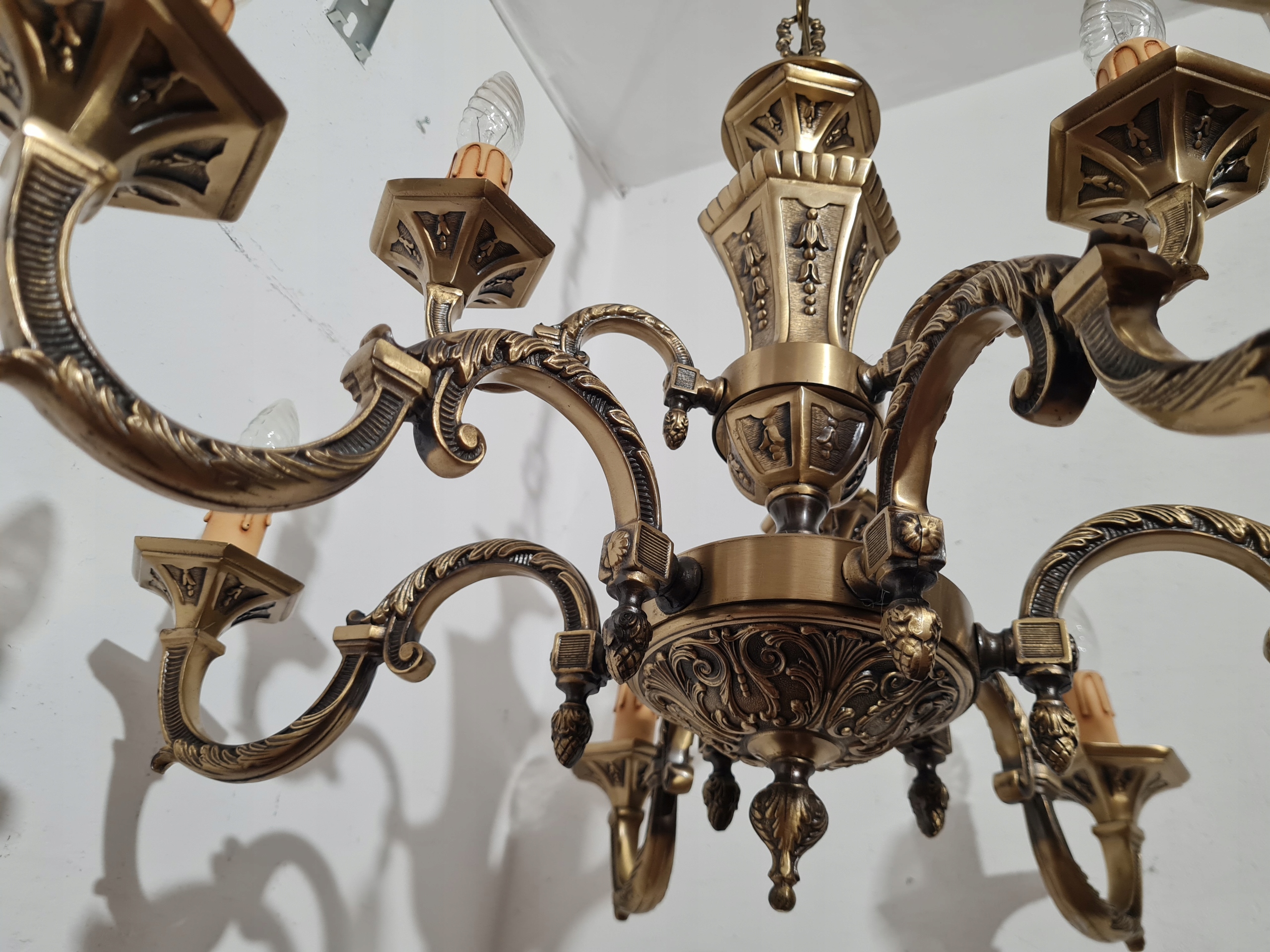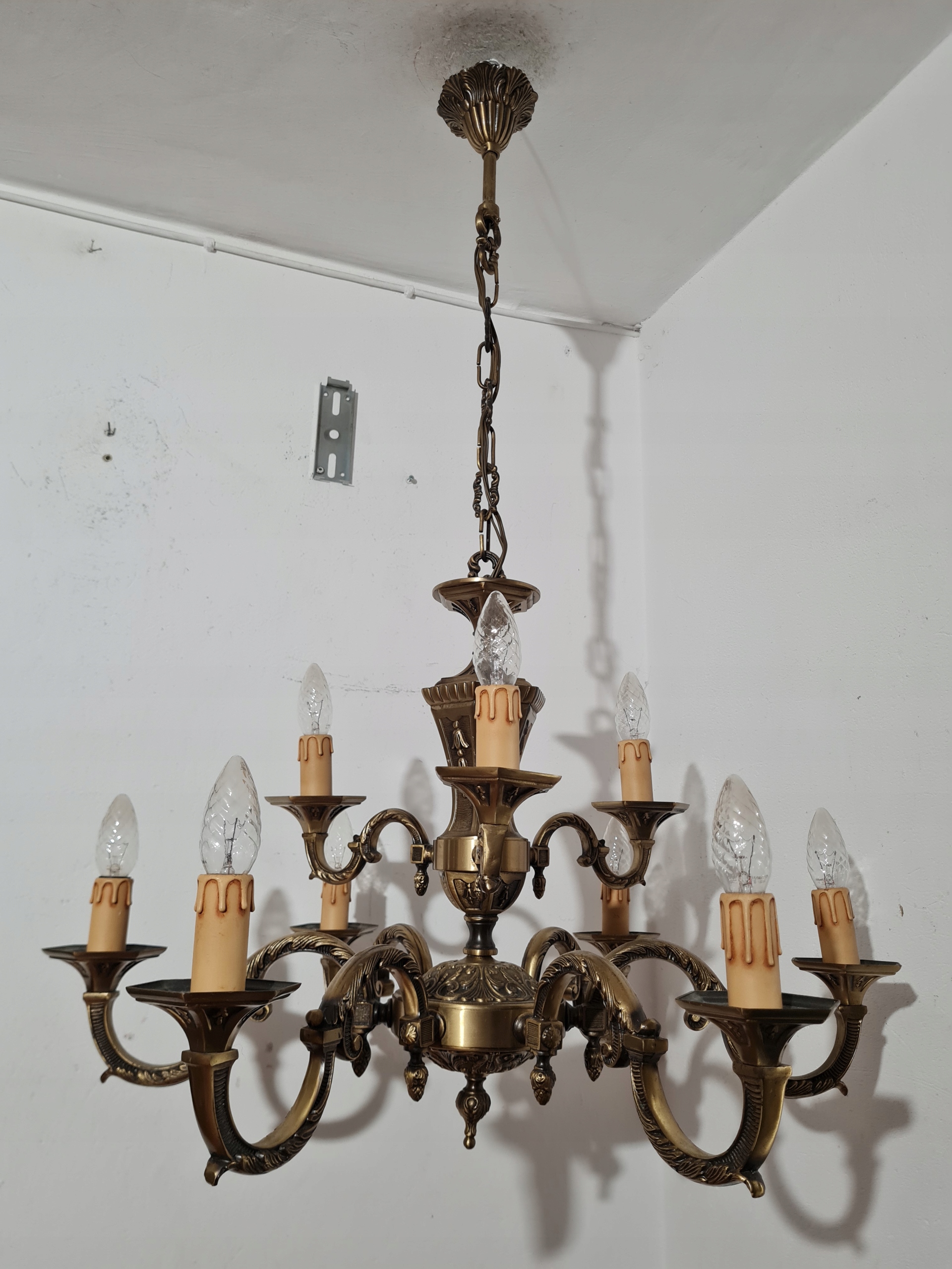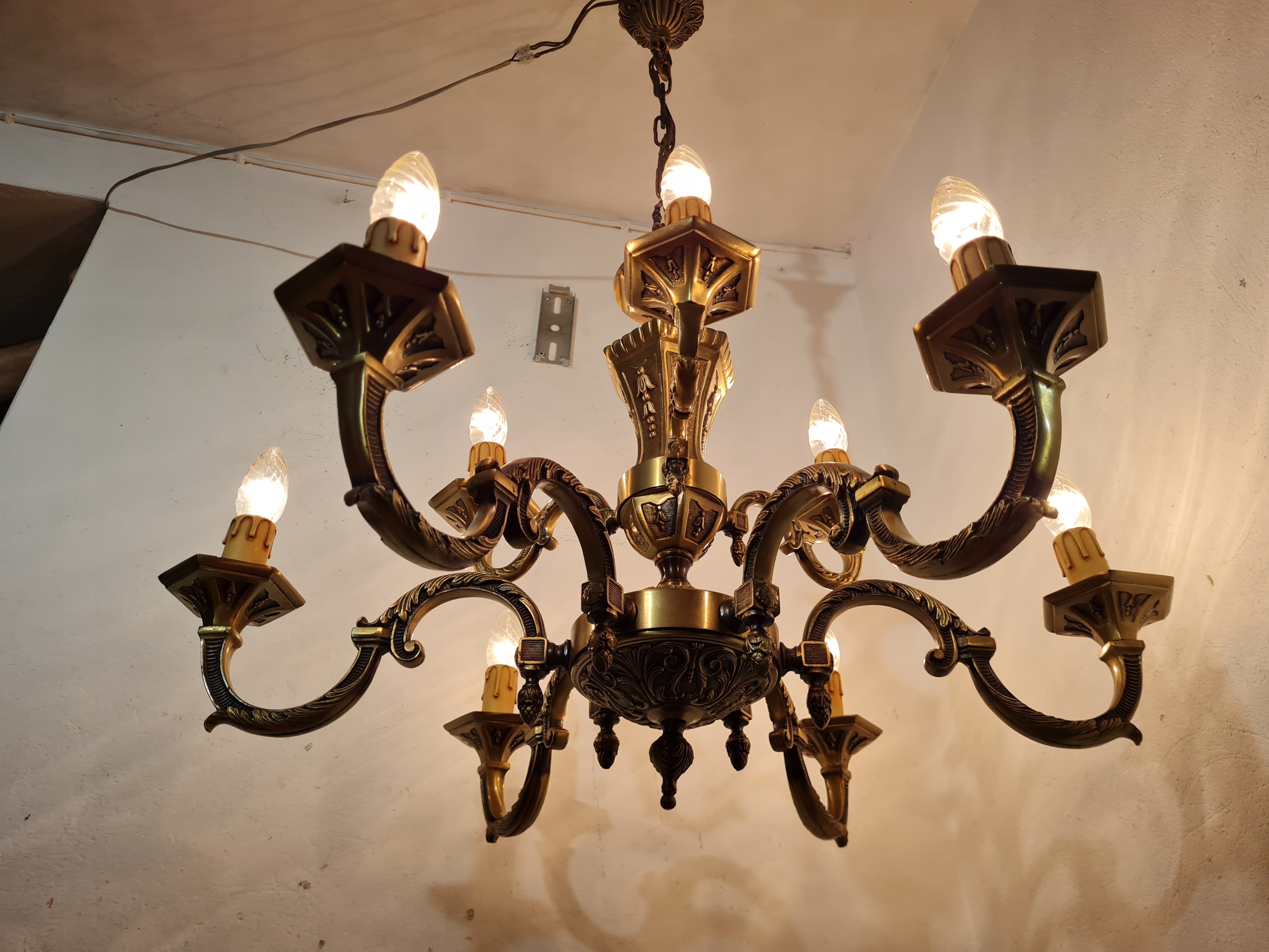 Стильная, массивная, красиво оформленная 9-рожковая люстра.