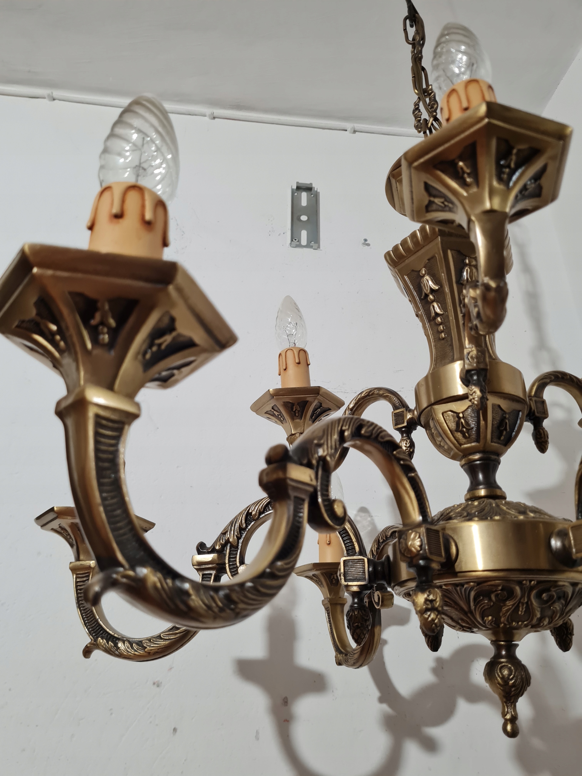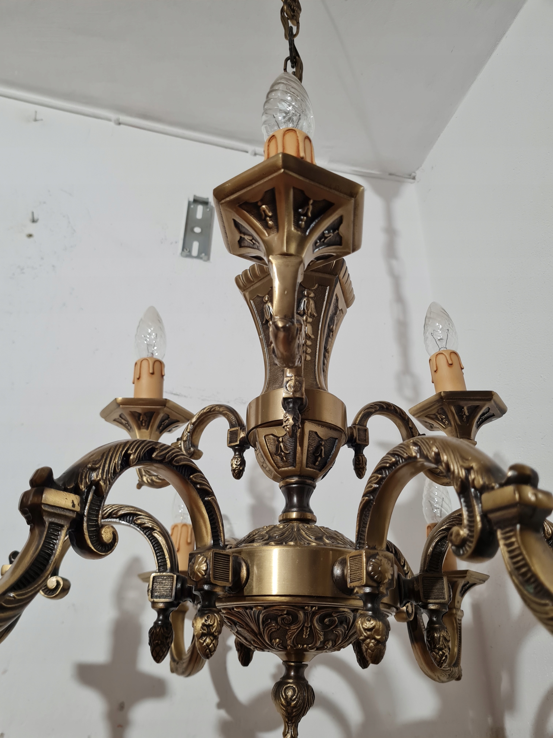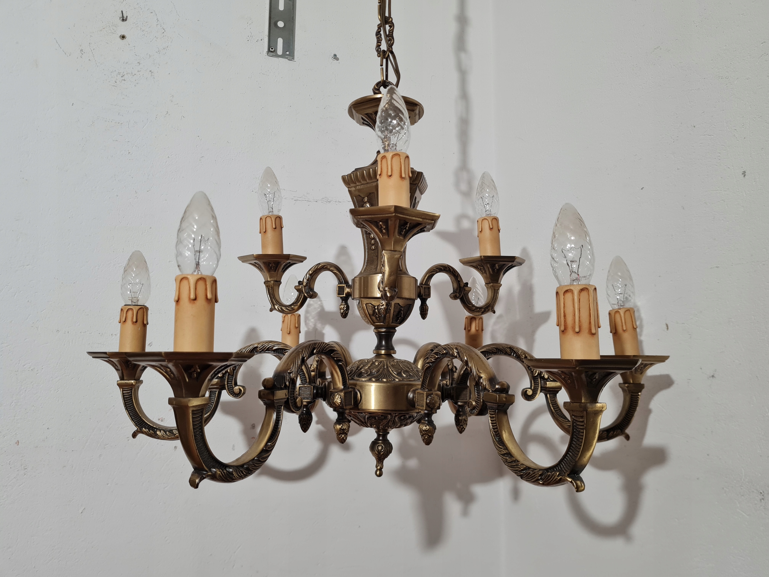 Стильная, массивная, красиво оформленная 9-рожковая люстра.