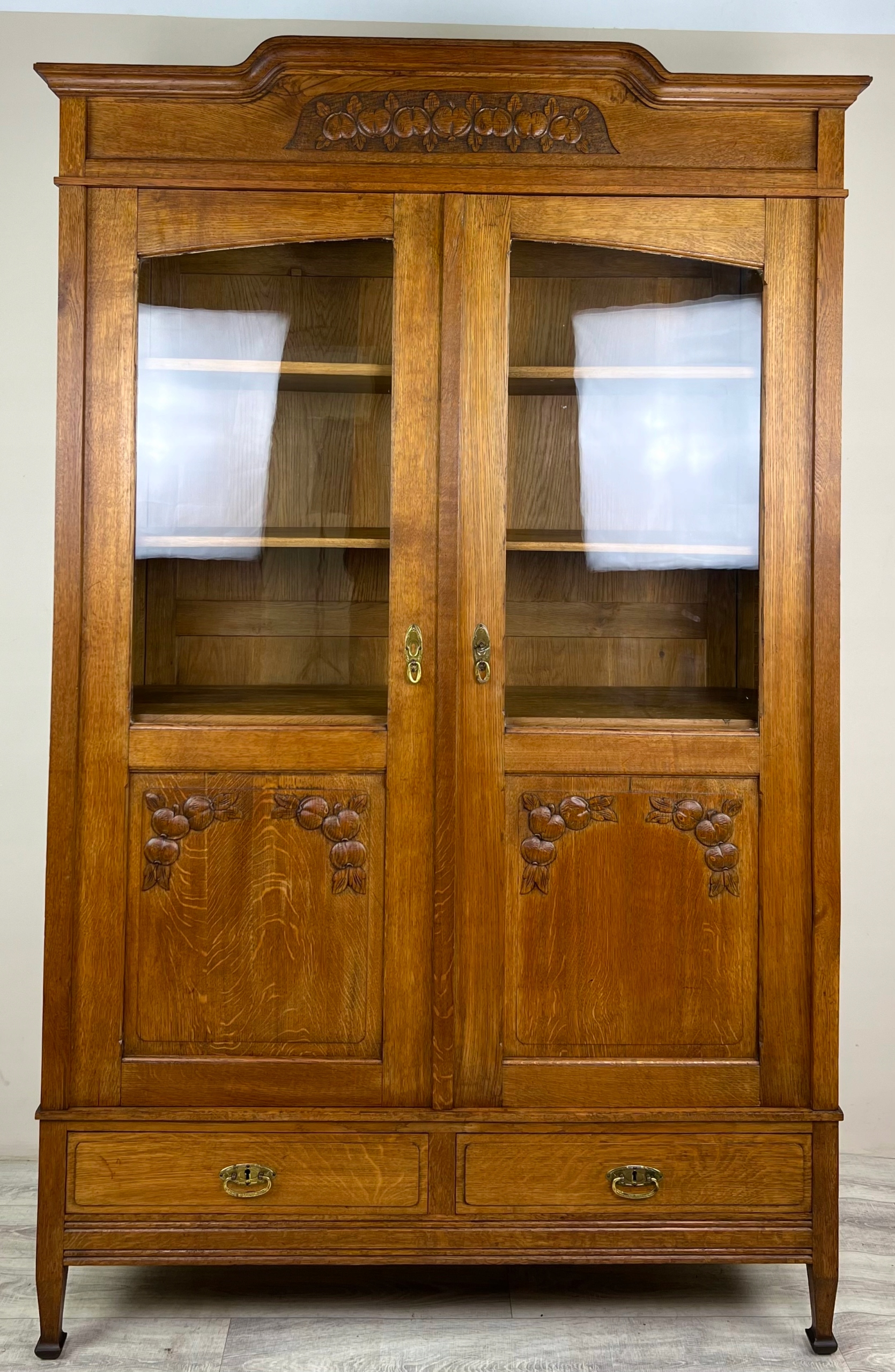 СТИЛЬНА БІБЛІОТЕКА АРТ-ДЕКО СЕЦЕСІЙНА ДВОДВЕРНА ВІТРИНА МАСИВ ДУБА L29