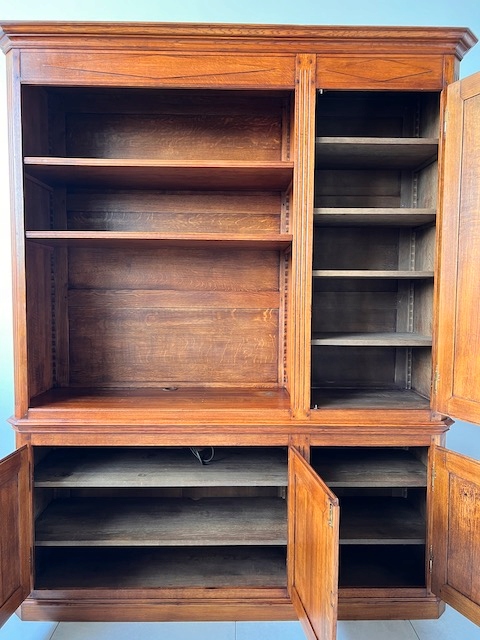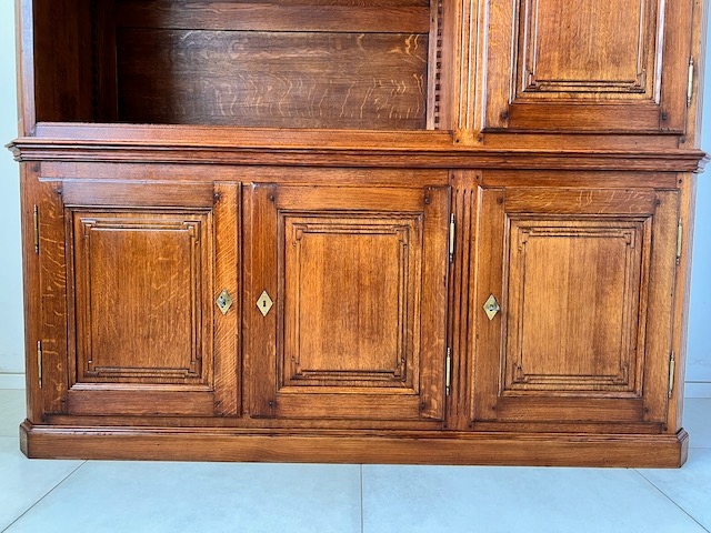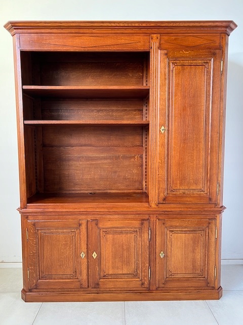 Библиотека изготовлена известной бельгийской компанией RIGAUX, предположительно в 2008 году. У нас есть сертификат подлинности на него. Он изготовлен из 100% массива дуба. Оно шипованное. Открытая часть была предназначена для размещения телевизора на столешнице. Следовательно, в этой части всего две полки. Все полки регулируются по высоте. Замки функциональные, с набором ключей. В нижнем шкафу, над верхней полкой, расположена планка с электрическими розетками. В столешнице, стене и полках вырезаются отверстия для свободного прохождения кабелей. Библиотеку можно с успехом использовать и для других целей, например, как бельевой шкаф или сервант. В целом он в хорошем состоянии. Только наверху есть следы, вероятно, от выдвижной полки на направляющих телевизора, а в правом углу - след какой-то "возделки". Внутри шкафа одна из полок имеет несколько потертостей. Других нет. повреждения или дефекты.Библиотека очень тяжелая.Состоит из двух частей верхняя и нижняя.Готова к установке