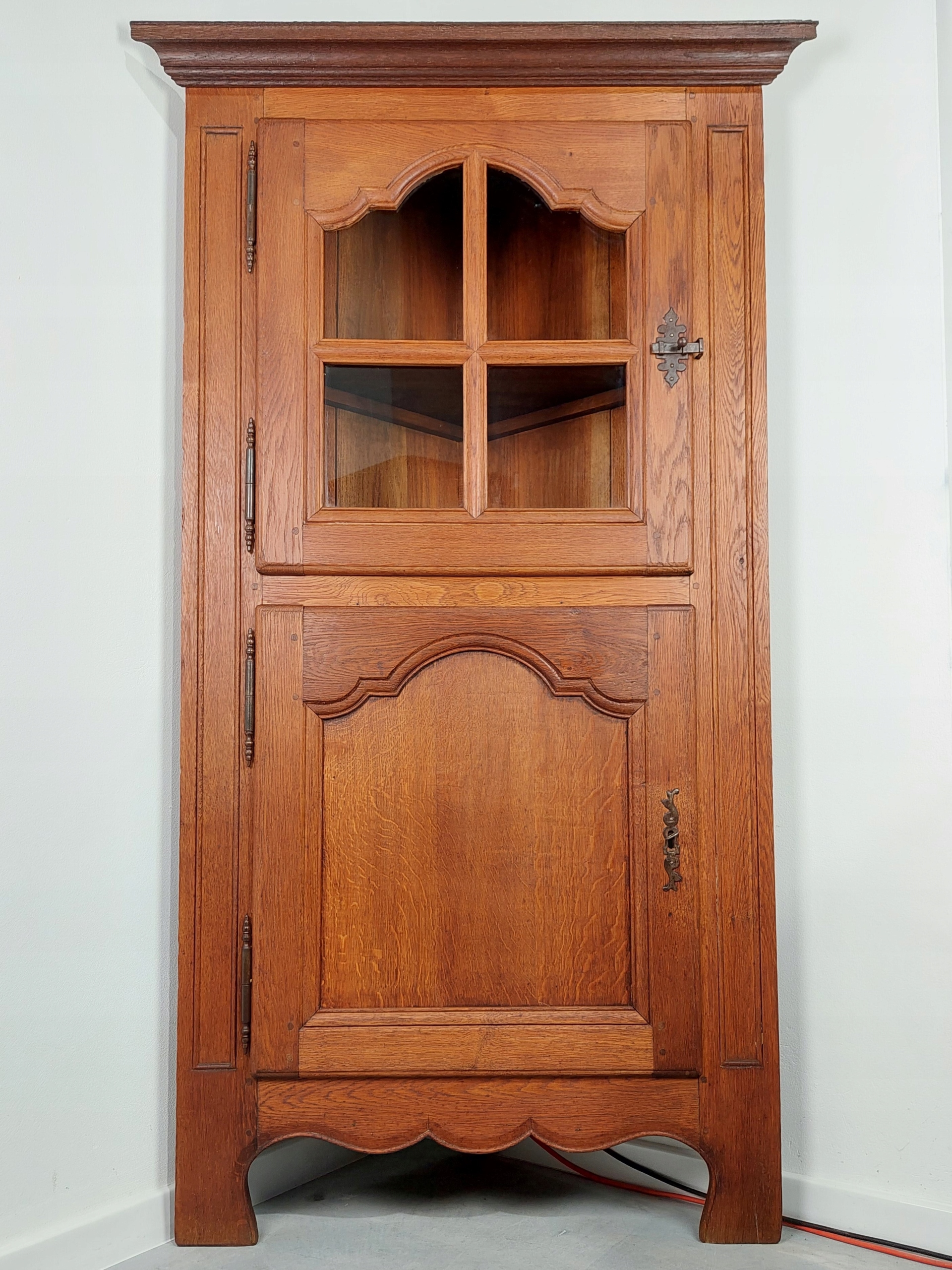 Стильная угловая витрина из голландского дуба - стеклянная полка, импортированная из Нидерландов, рабочие замки, ключ в комплекте. Его можно использовать как библиотеку, поскольку все полки деревянные, а вся мебель изготовлена из массива дуба (очень тяжелого и прочного). Шипообразная конструкция с чугунной фурнитурой. Мебель имеет типичные следы использования. Подробные фото ниже.