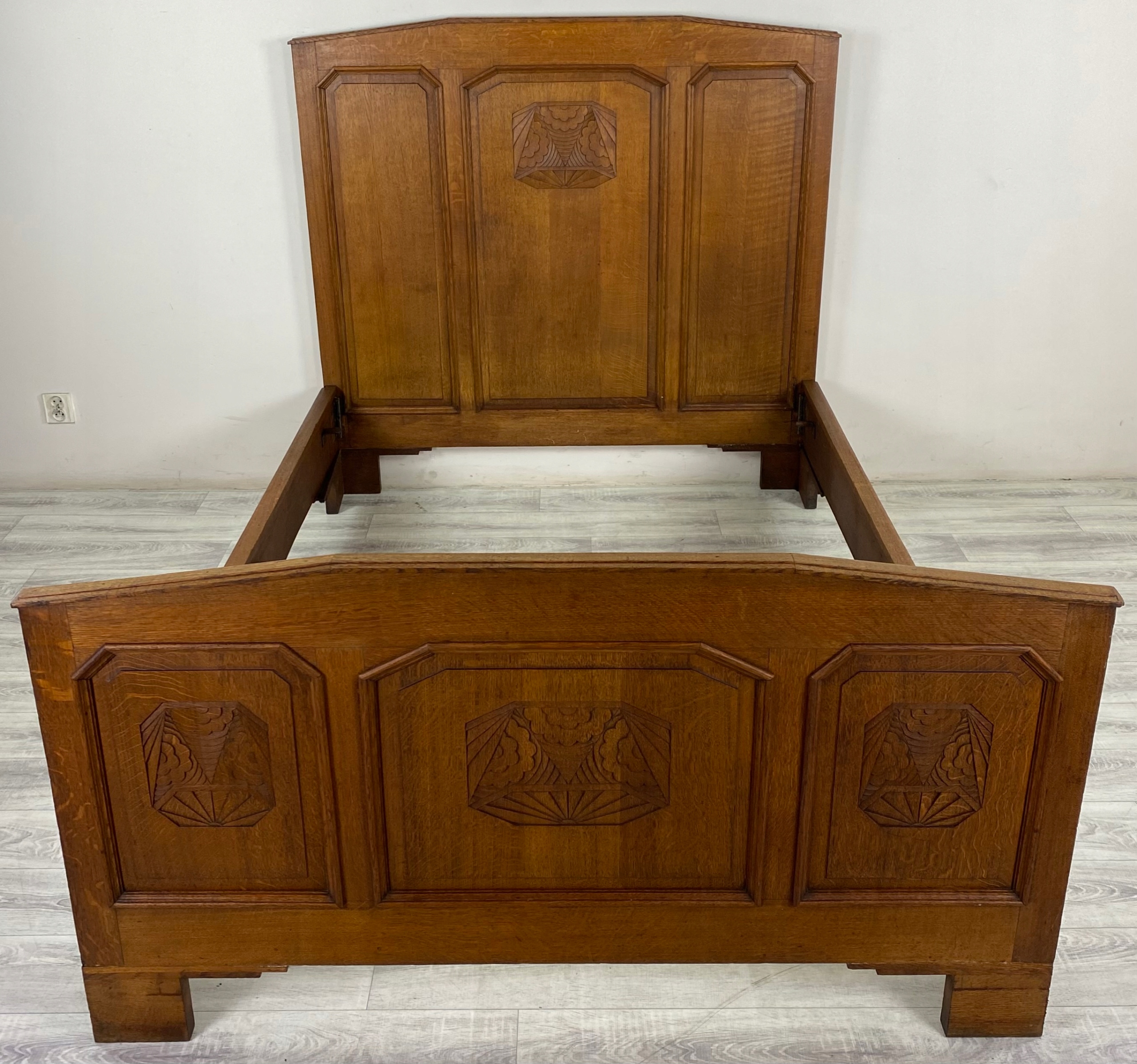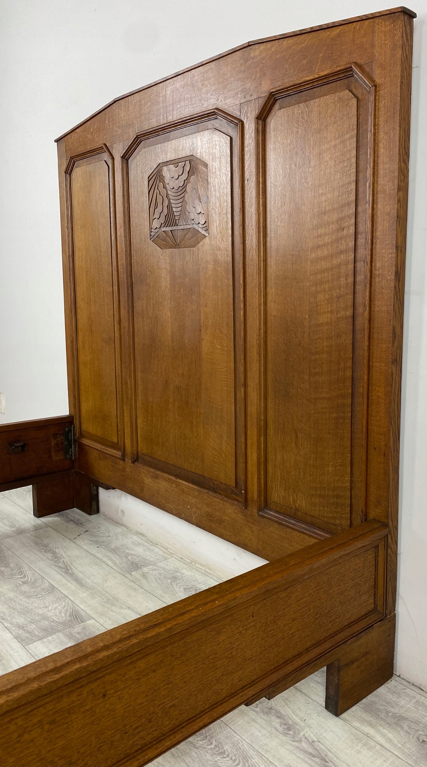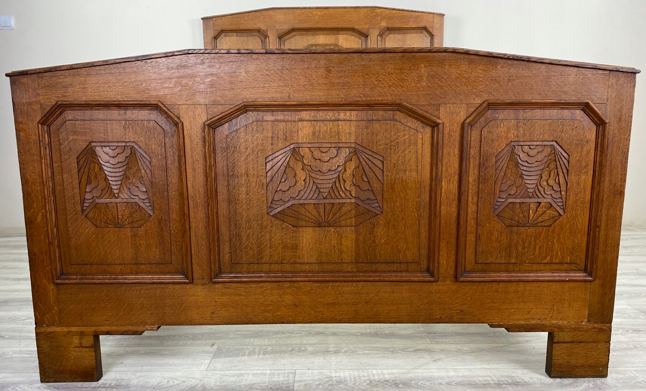 Стильный дубовый кровать в арт деко -деко, спальня, сплошной дуб S16