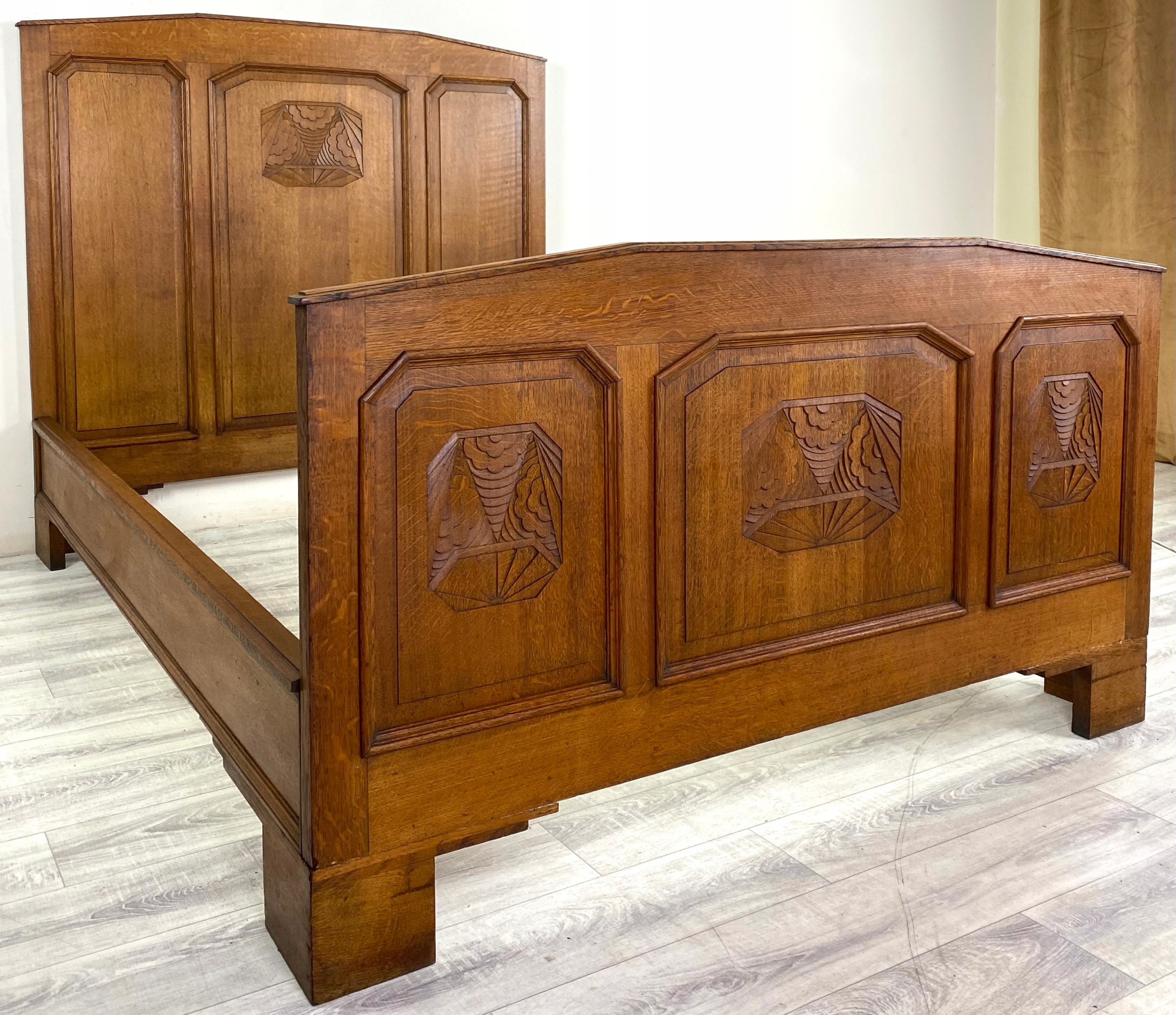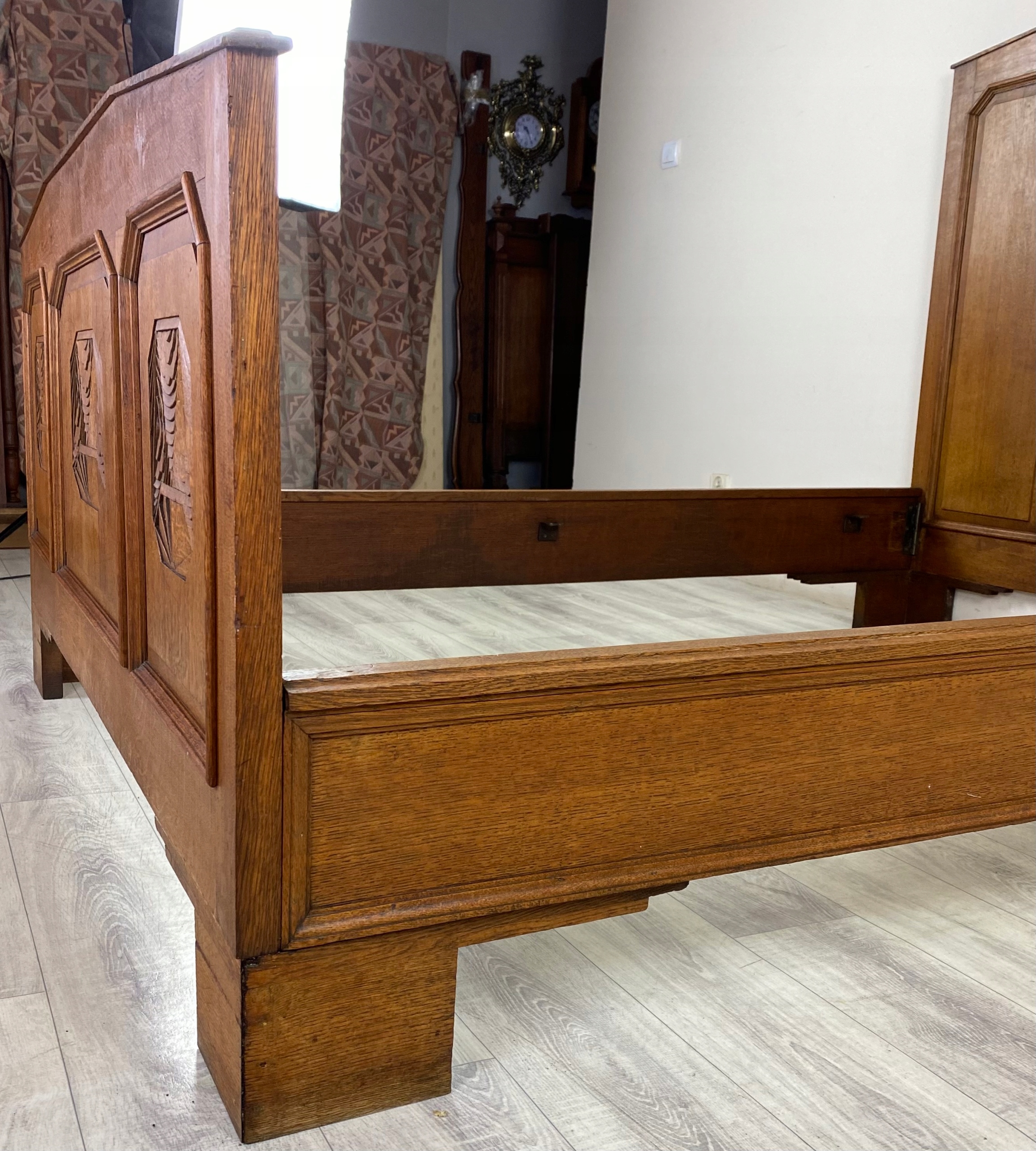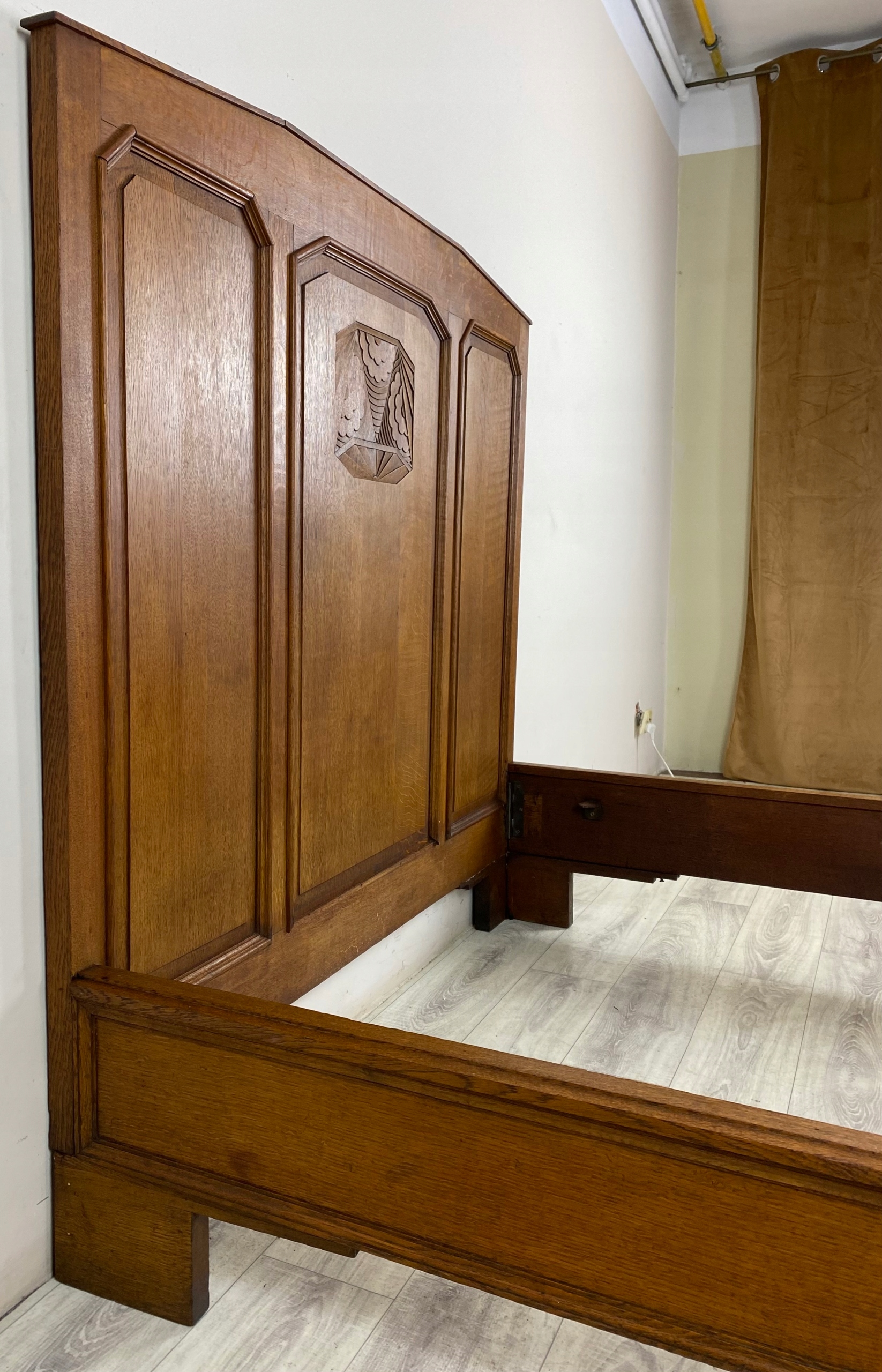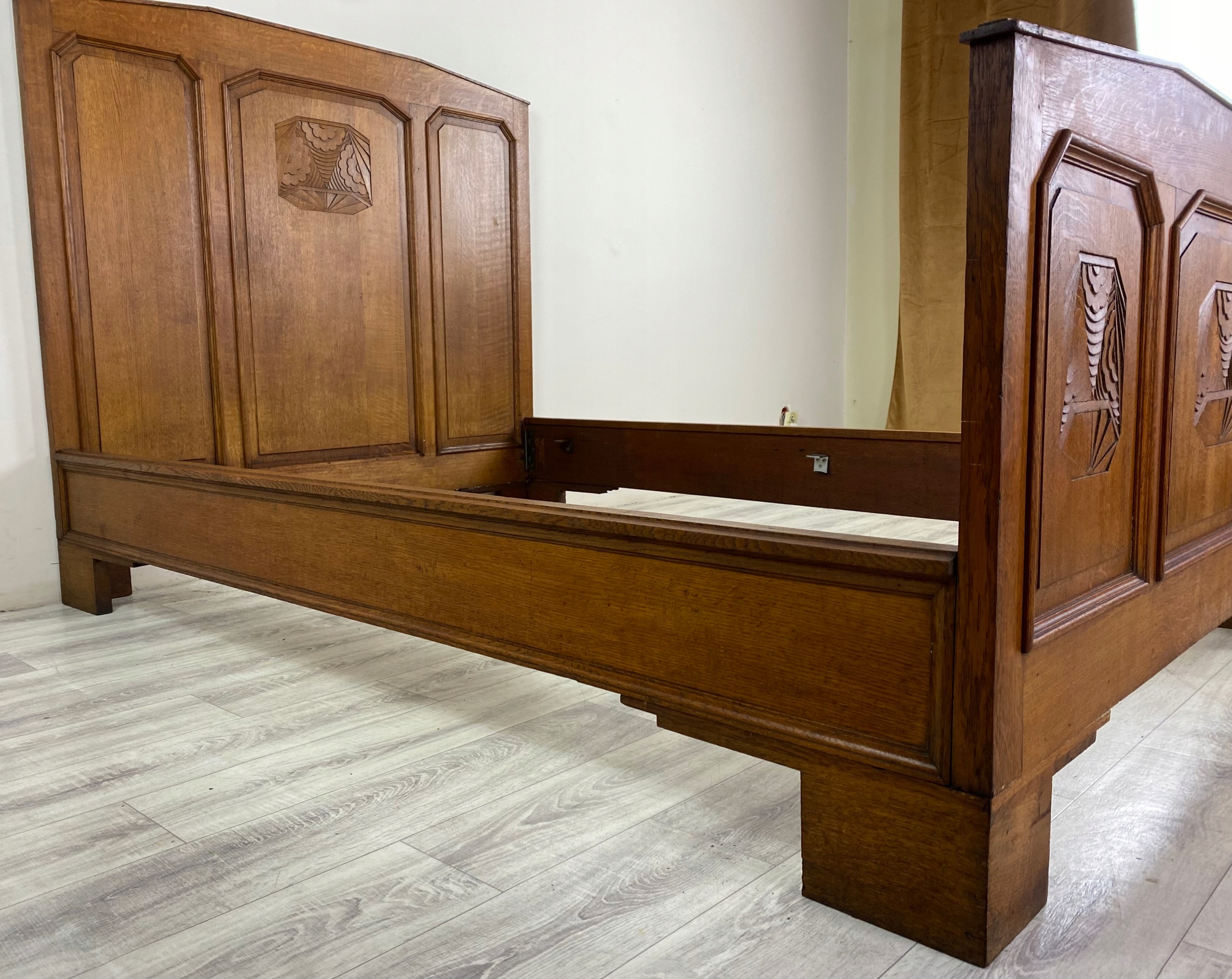 Стильный дубовый кровать в арт деко -деко, спальня, сплошной дуб S16