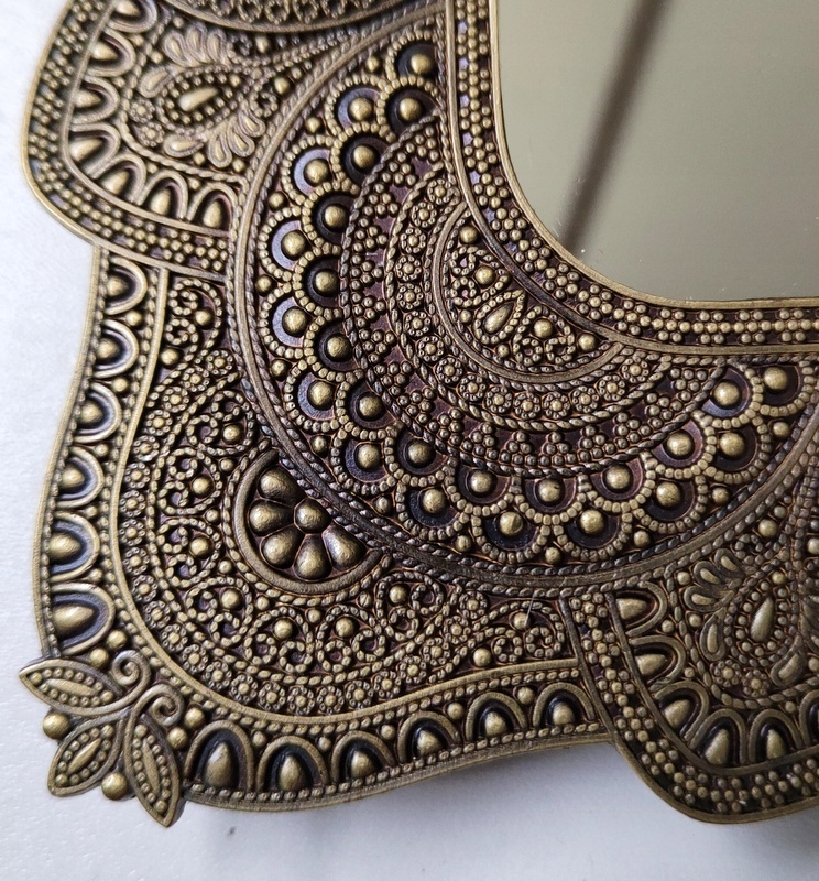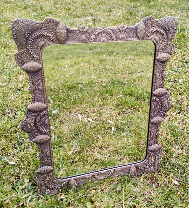 Красивое, впечатляющее зеркало с фантастическим декором. Изготовлен из цинкового сплава, покрыт латунью цвета старого золота. Восхищает своей изысканностью и оригинальностью.