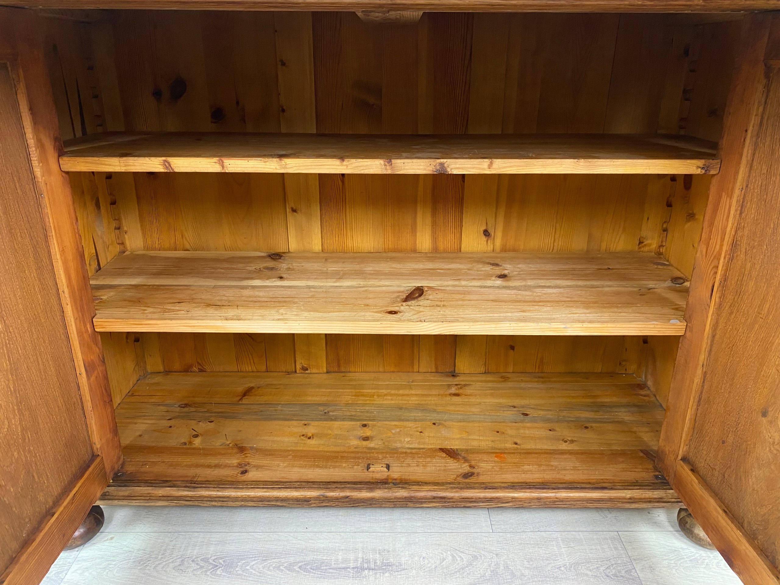 Комод имеет два навесных фасада и два ящика. Внутри комода две полки.