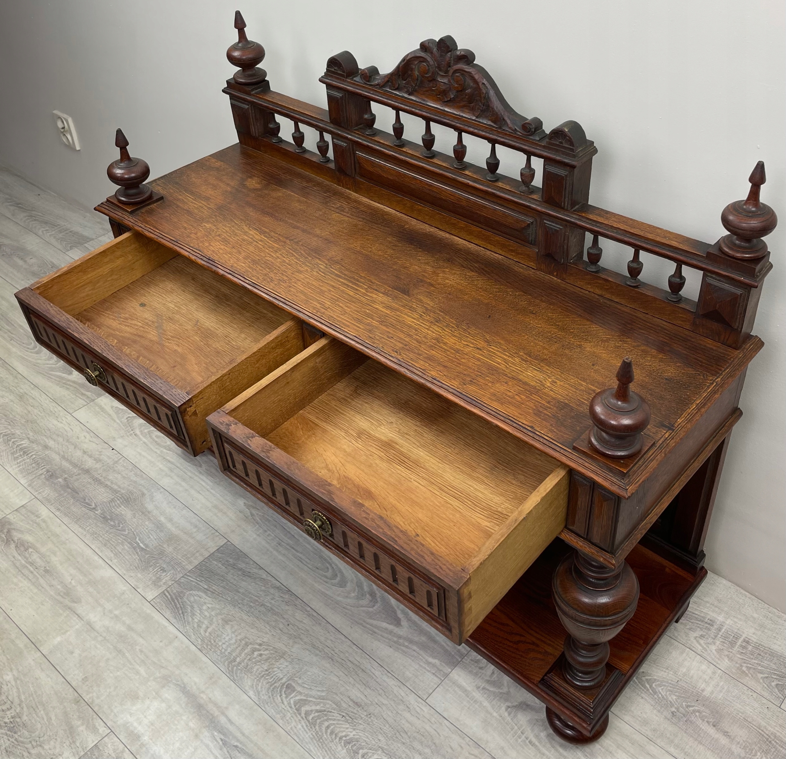 Комод имеет два ящика.