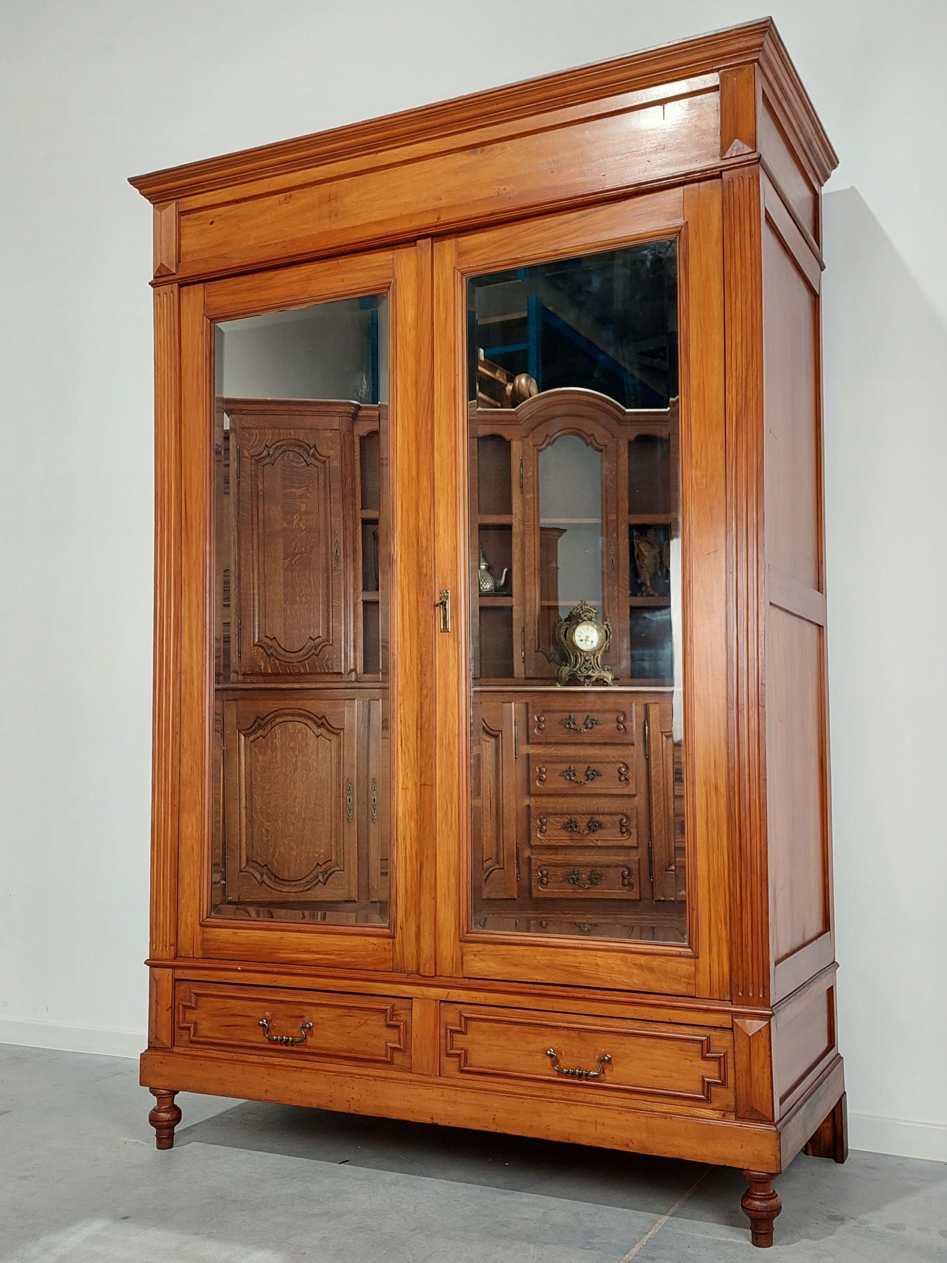 Стильный эклектичный шкаф 19 века из орехового дерева. Мебель 1930 года выпуска, подпись на последнем фото. Замок работает, ключ в комплекте. Оригинальные хрустальные зеркала, слегка оксидированная поверхность в 2-х местах. Внутри имеется металлическая повязка для вешалок. На мебели могут быть следы ремонта и использования (из-за возраста). Шкаф привезен из Франции, для транспортировки разобран. Подробные фото ниже.
