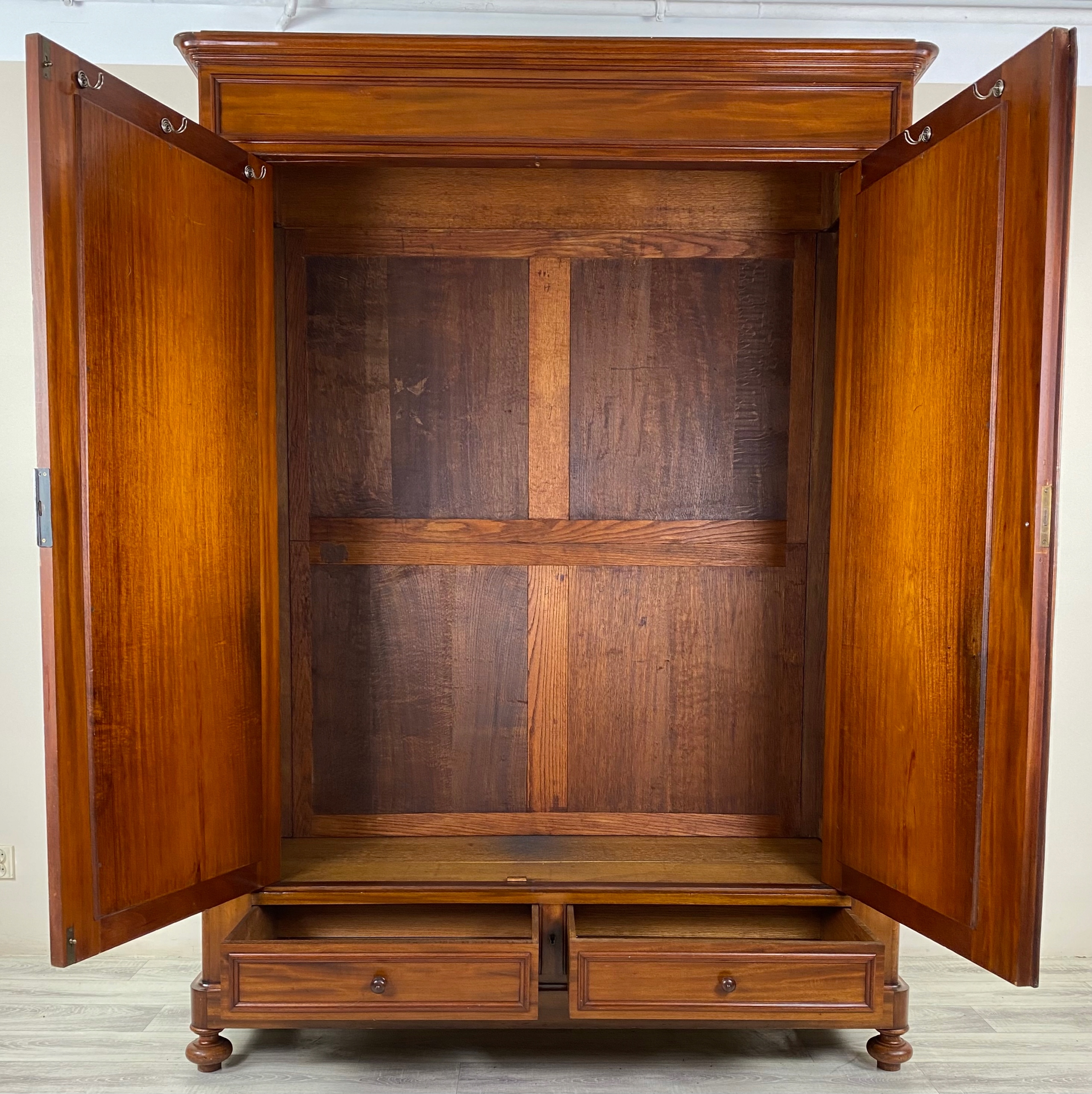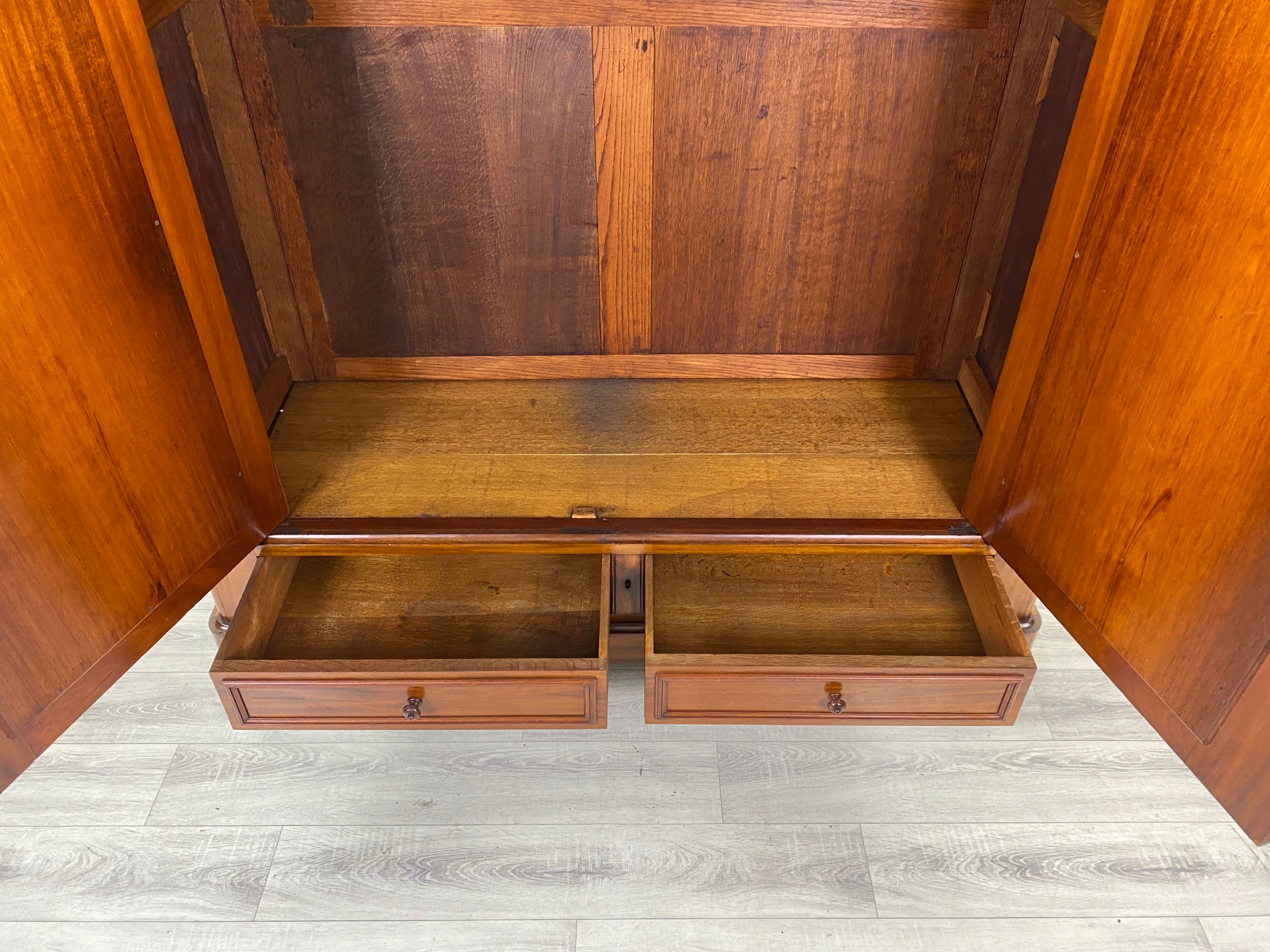 Шкаф выполнен из орехового дерева.