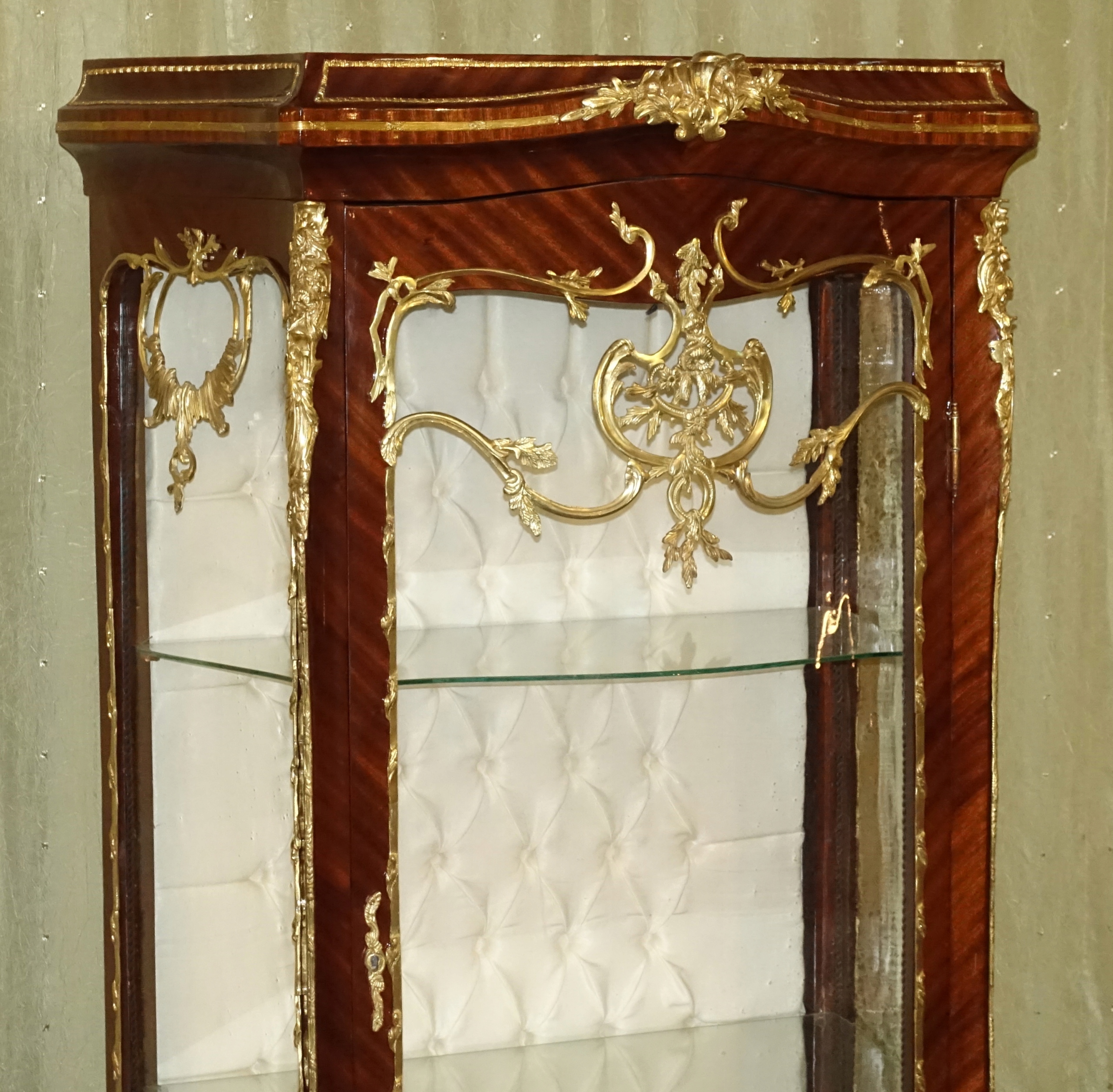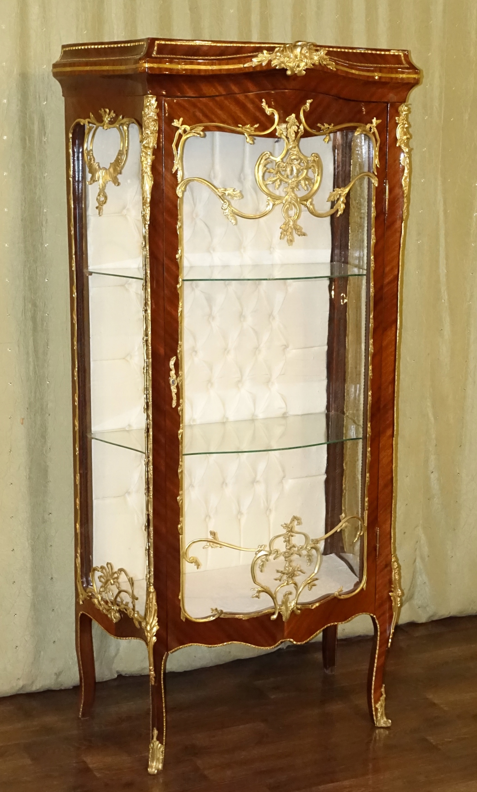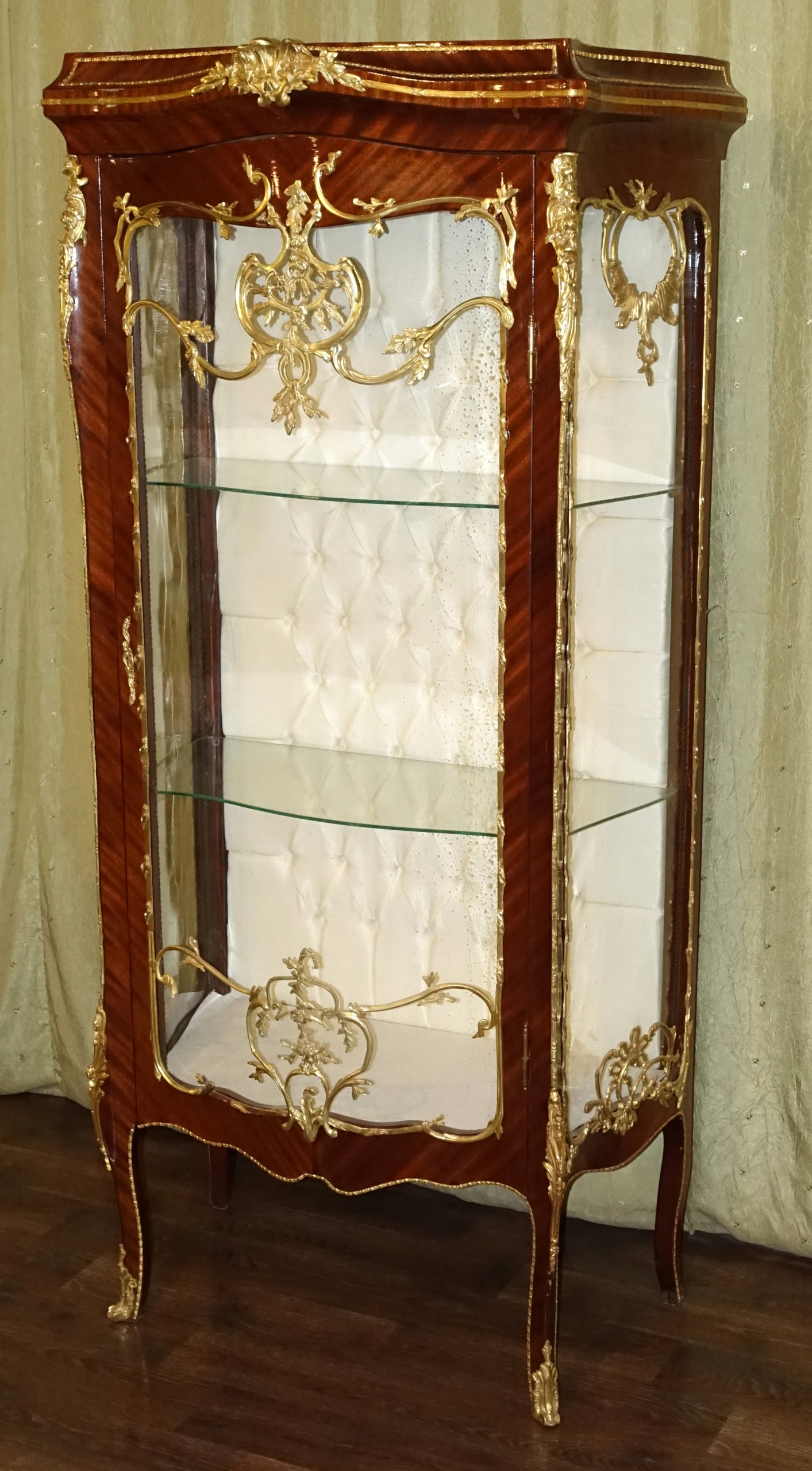 Современный предмет мебели, сохраняющий старый дизайн и стиль. Он имеет две стеклянные полки, а также заднюю и нижнюю часть, облицованную материалом белого и кремового цвета. Красивые цвета и многочисленные украшения из массива латуни, особенно в нижней и верхней частях, перекрывающих дверное остекление, делают предмет мебели чрезвычайно элегантным и со вкусом оформленным экспонатом, который непременно повысит эстетическую ценность любого помещения.