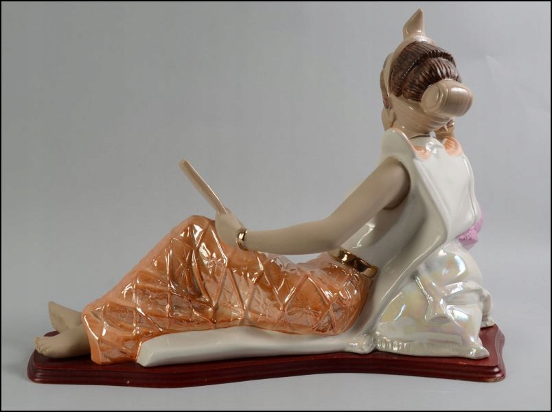 Мы предлагаем вам эксклюзивную красивую фигуру лживой женщины. Фигура сделана в стиле художественного деко фарфора Опалина. Объект поступает из Испании, представляет достойную женщину, которая разоблачает свое тело, как богиня. Эта очень великолепная фигура сделана из роскошного фарфора, о чем свидетельствует подпись на деревянной основе). Отличное и чрезвычайно оригинальное украшение, которое поддерживается в очень хорошем состоянии (нежные ссадины можно увидеть только на основе, что видно на прикрепленных фотографиях). Идеальная фигура для гостиной, к комоде, в офис !! Я призываю вас купить !!!