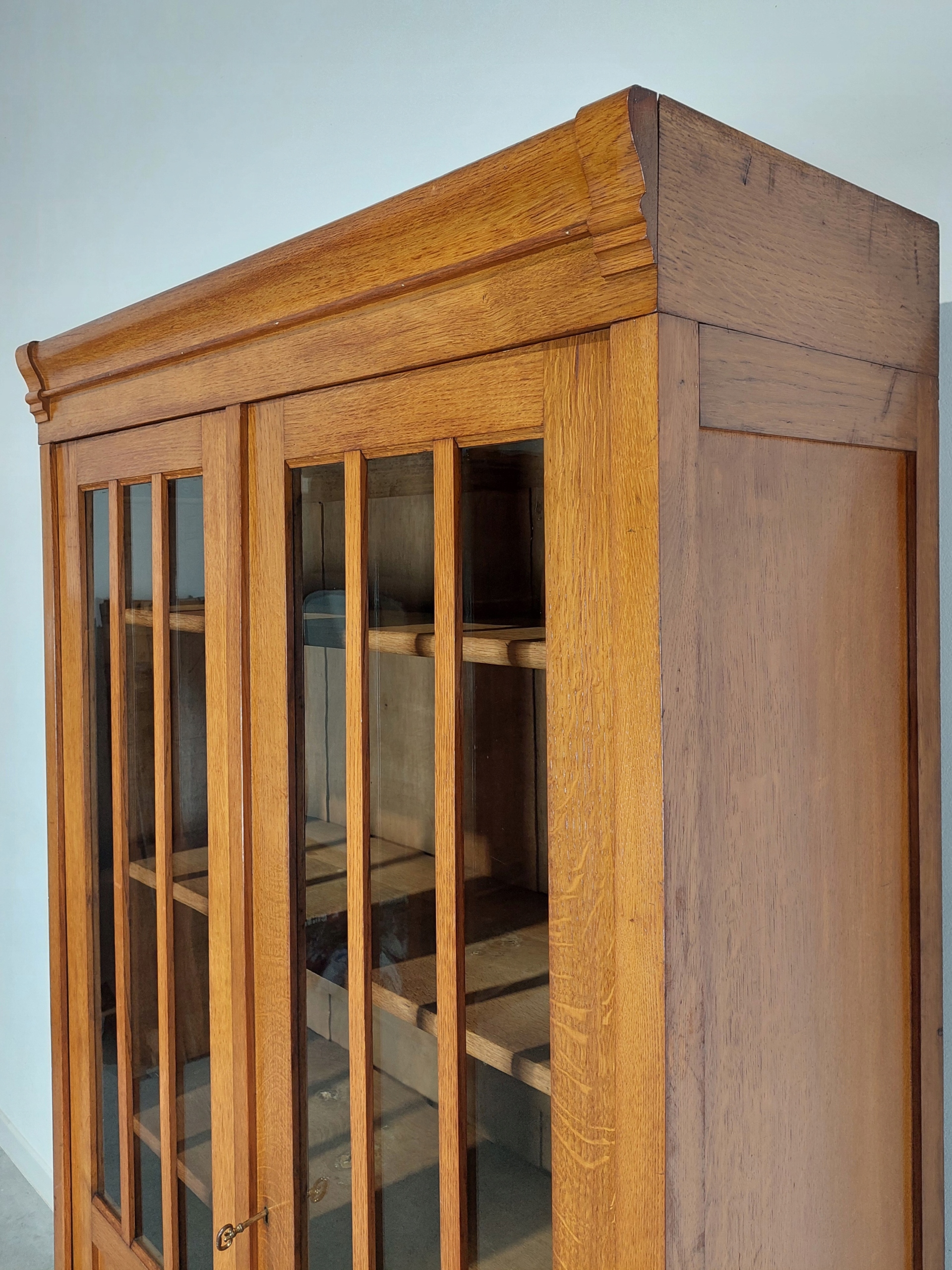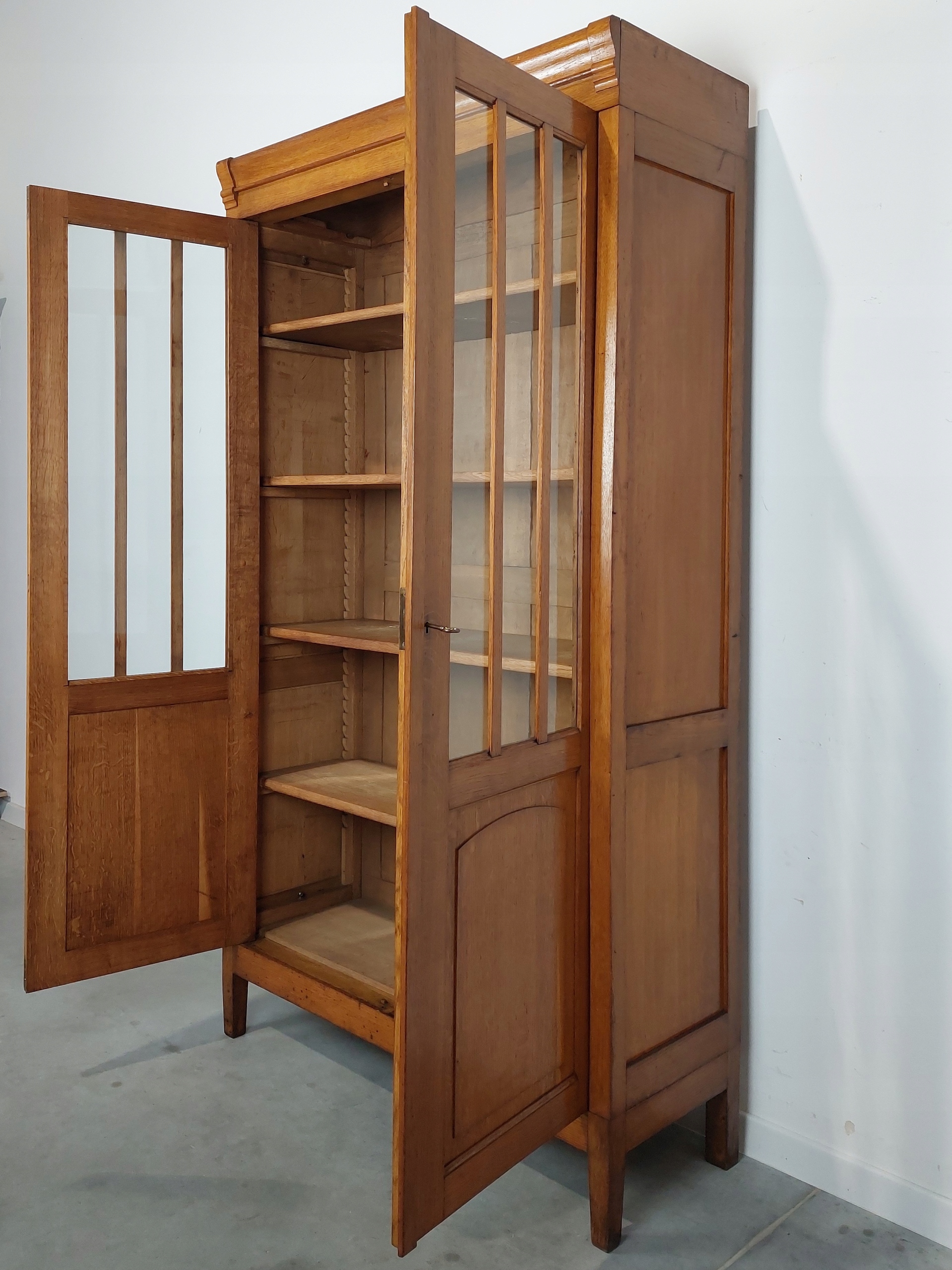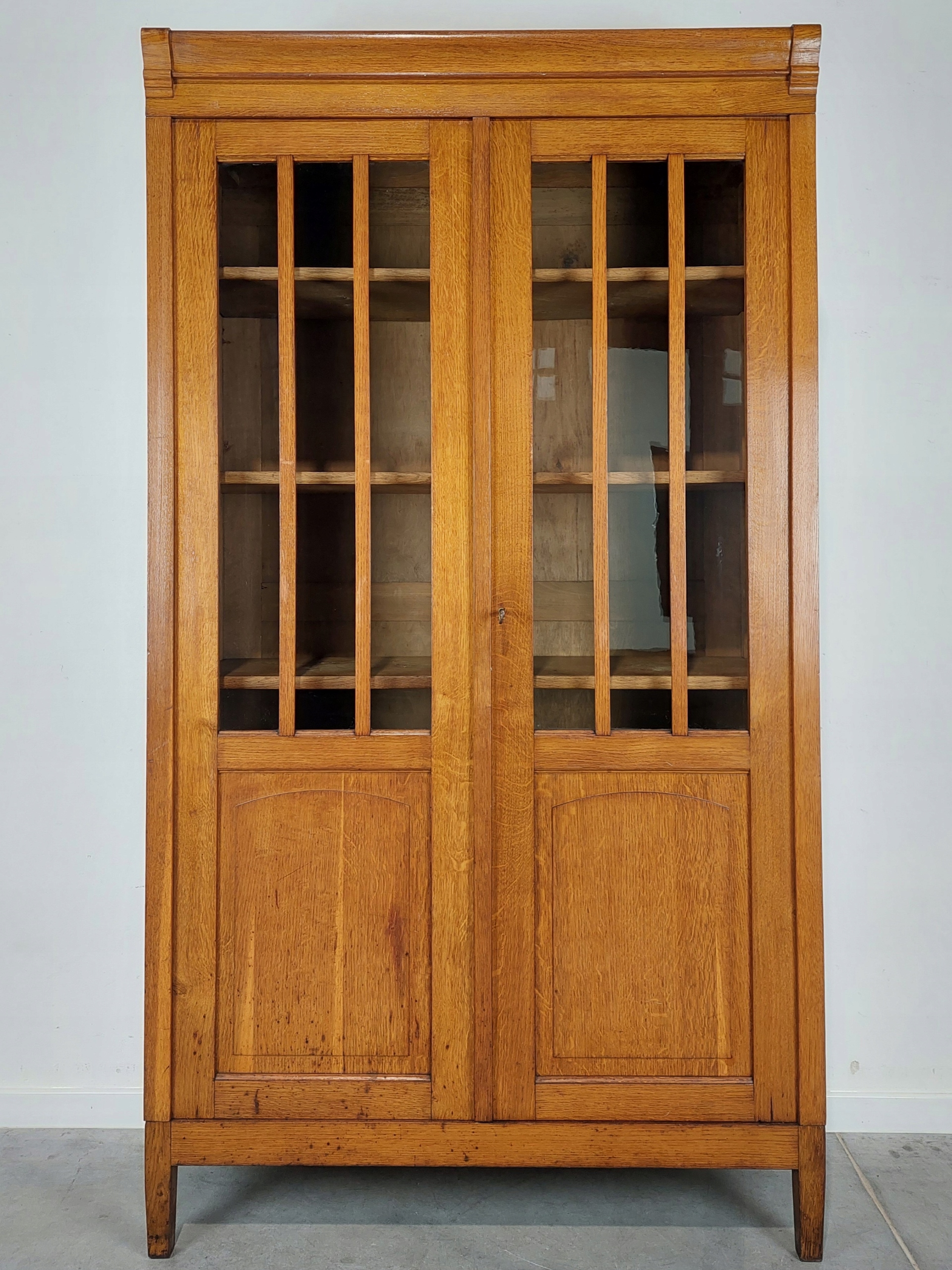 Стильная дубовая библиотека / деревенский сайт, привезенный из Франции. Мебель и полки сделаны из твердого дуба. Эффективный ключ замка в наборе. Внутри системы с возможностью регулировки полков. Мы транспортируем мебель, развернутую и защищенную. Мебель носит полезные знаки, в основном обесцвечивание на левой двери, небольшие царапины ссадин. Фотографии по ухудшению ниже