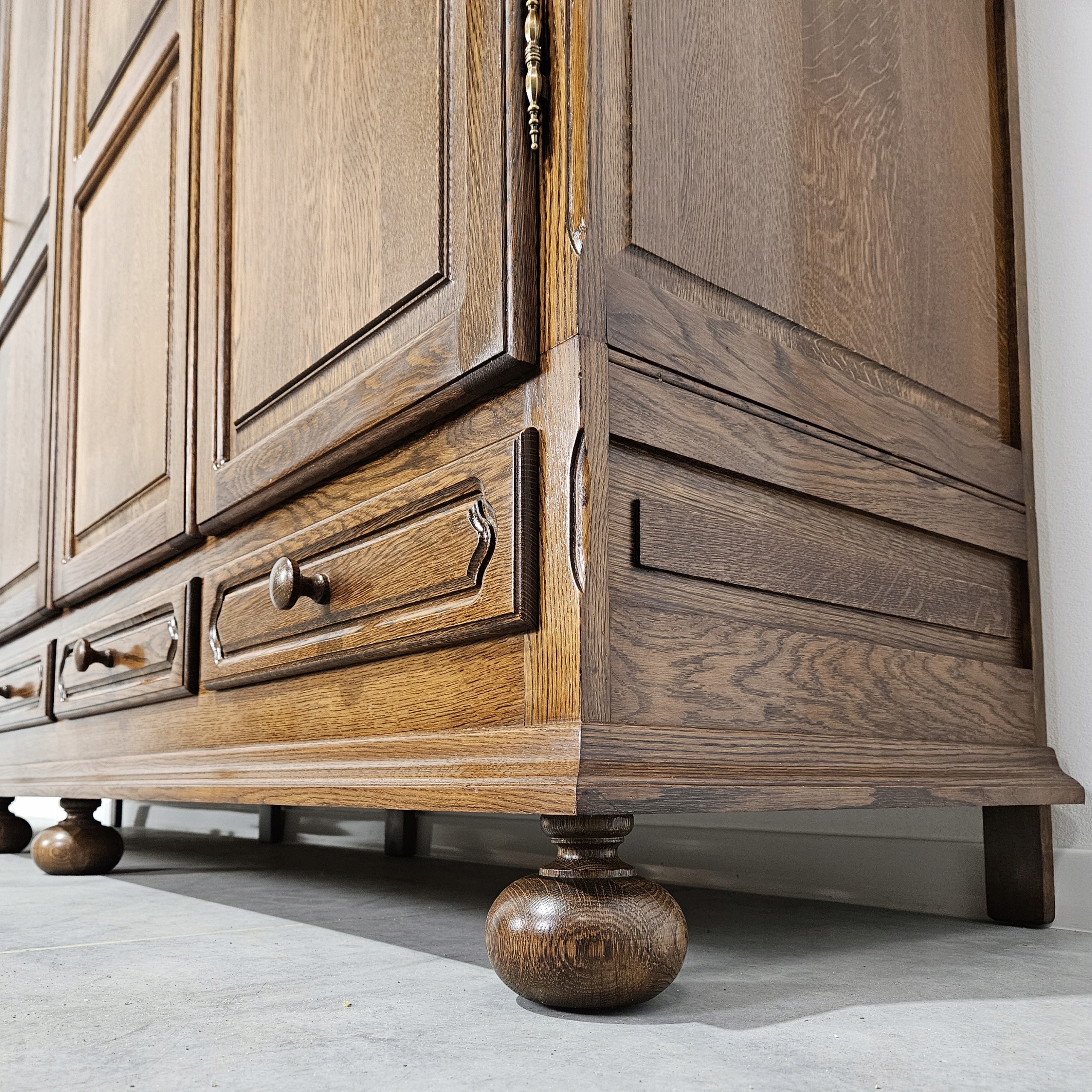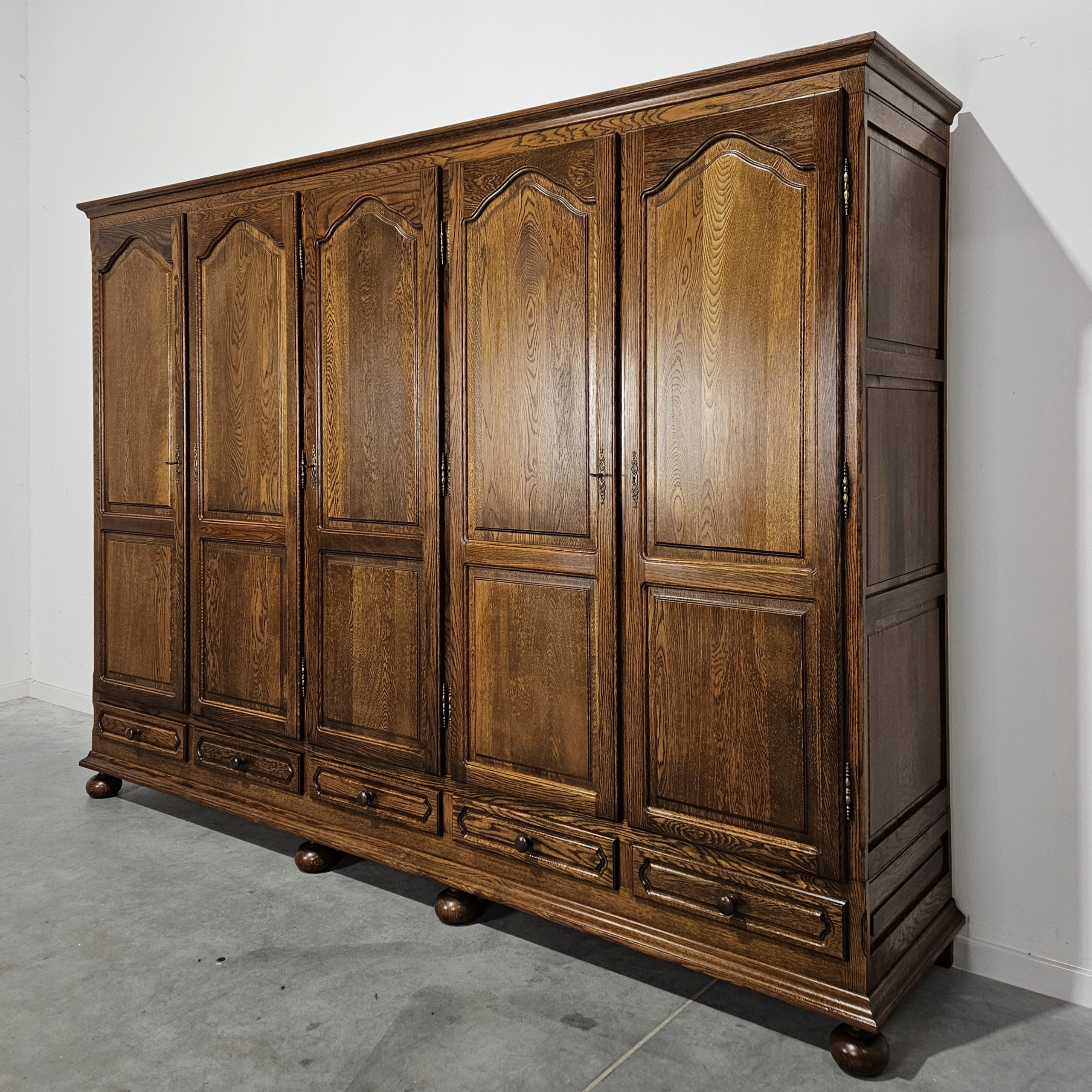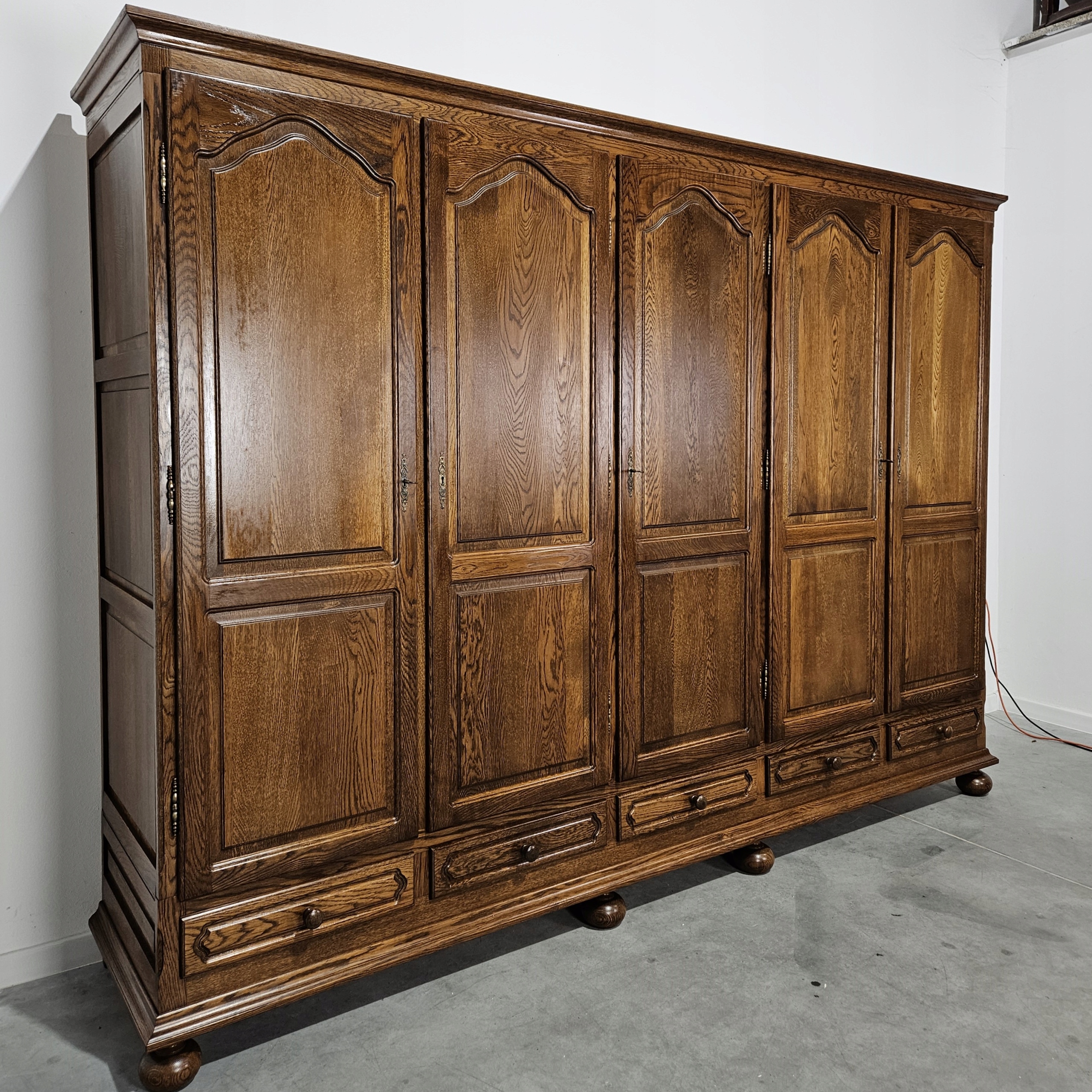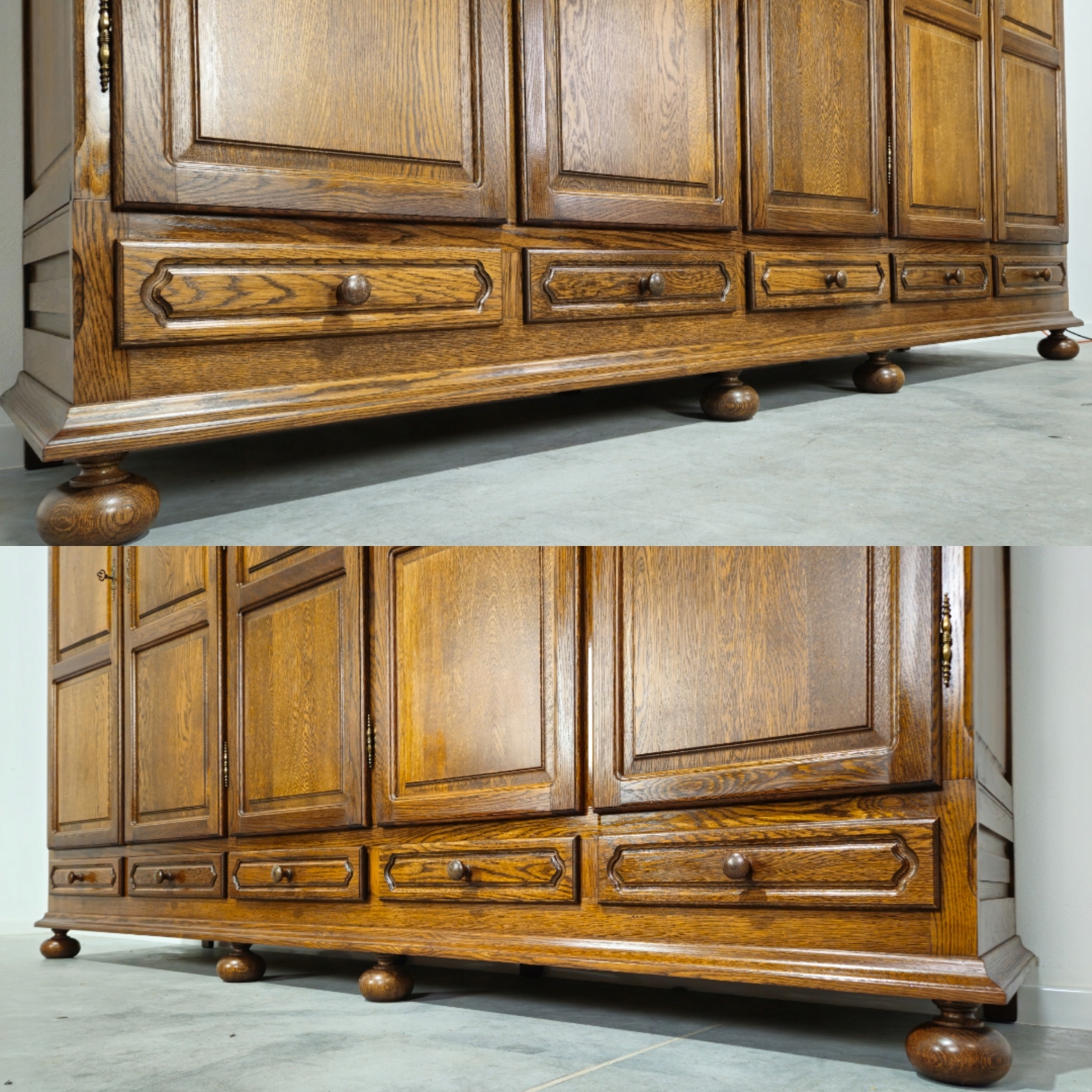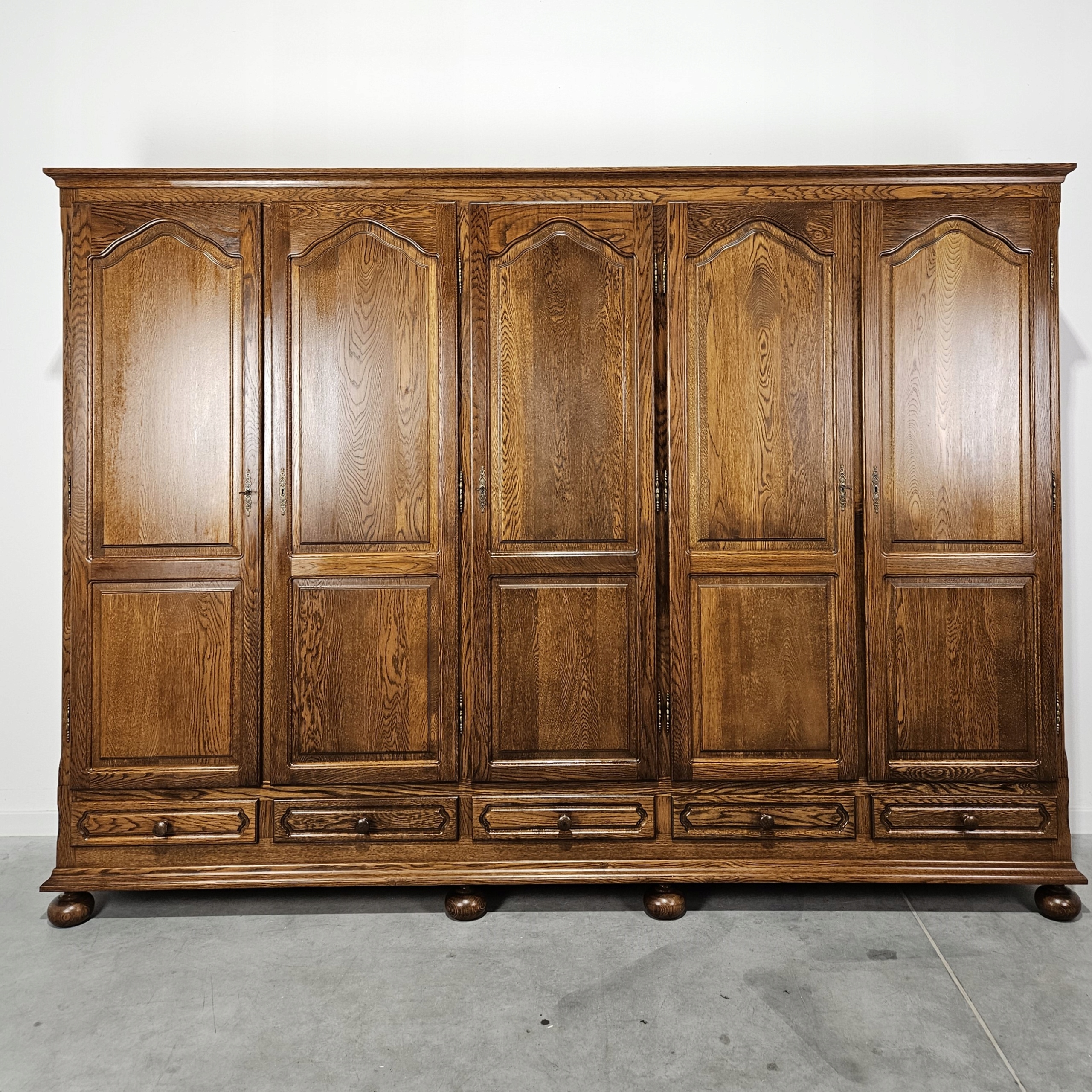 Стильный пятидверный шкаф - голландский шкаф. Шкаф импортирован из Нидерландов, конструкция: фасады, ножки из дуба, натуральный дубовый шпон. Мебель имеет типичные следы использования, видимые на фотографиях (царапины, мелкие потертости). Замок в рабочем состоянии, в комплекте 3 ключа. Внутри места практически нет. Для транспортировки шкаф разбирается. Подробные фото ниже.