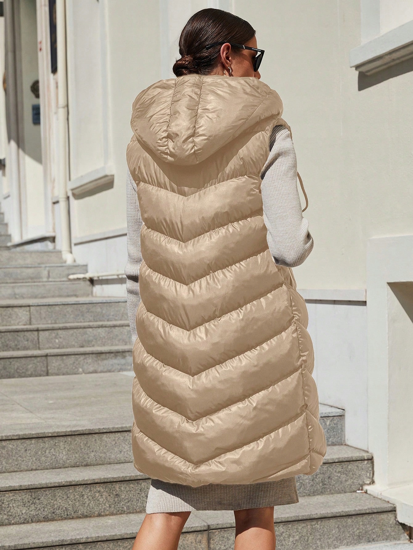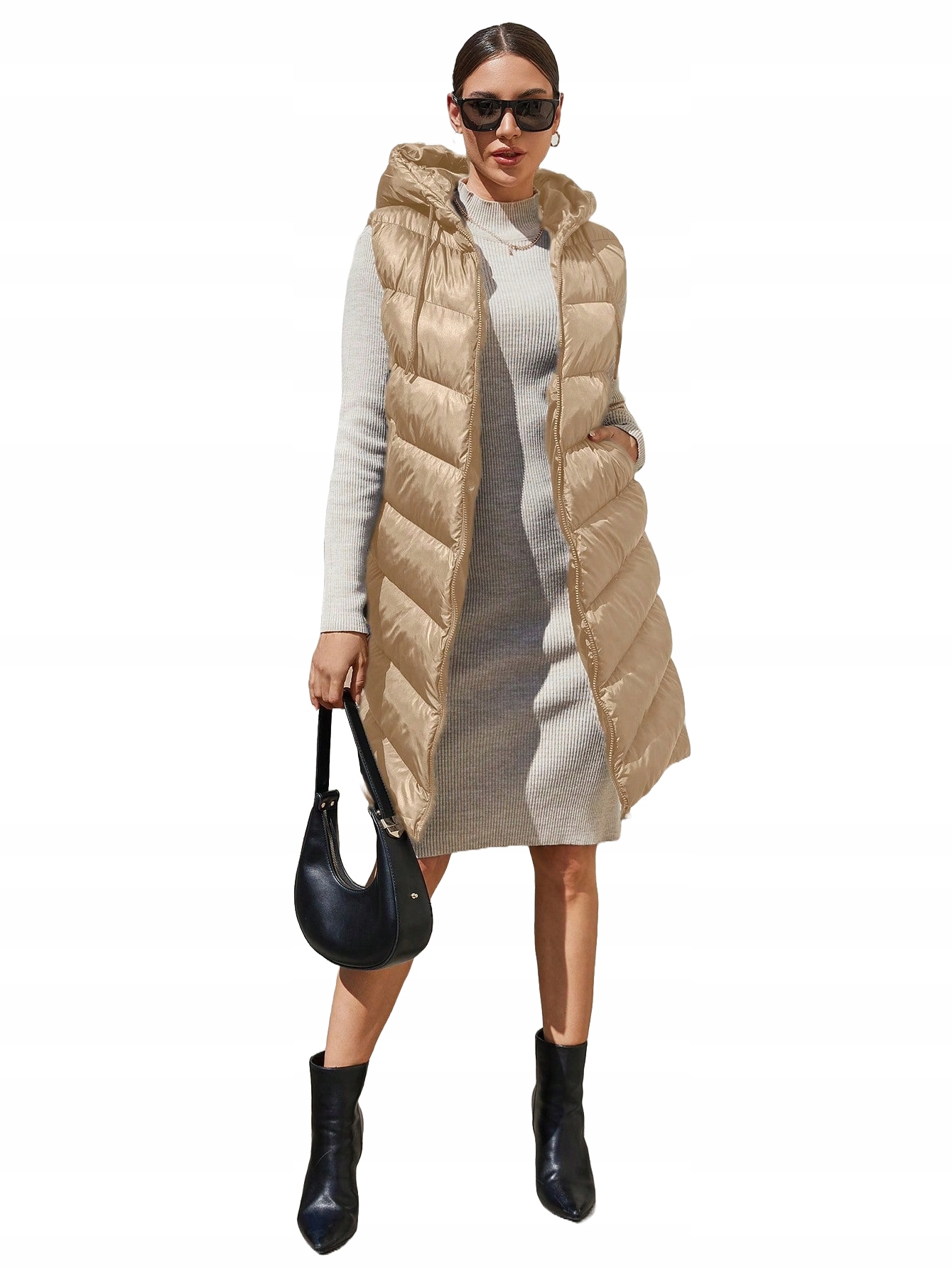 Капюшон делает жилет идеальным выбором для ветреных дней, а его длинный крой тонко подчеркивает силуэт, добавляя стиля любому образу.