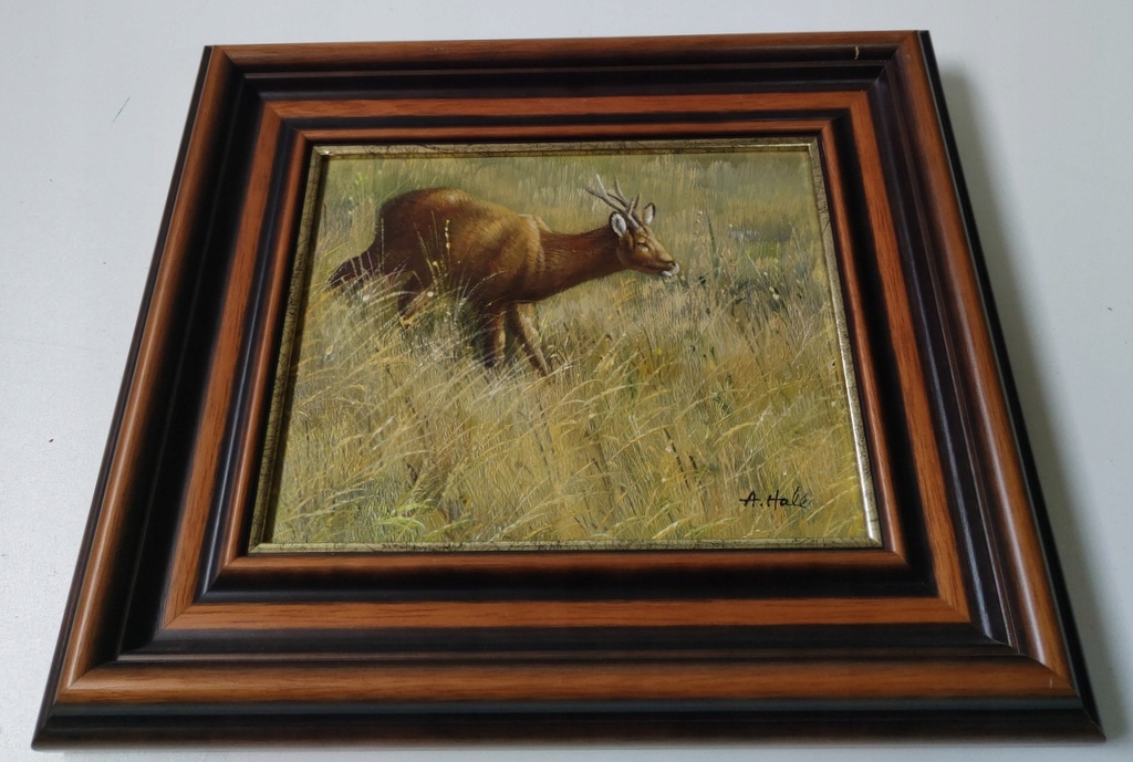 В картине показана игра красок, баланс светотени и чувственности в кисти. удар чудесной природы. Для повышения ценности и эстетики она оформлена в стильную деревянную раму цвета темного ореха и черного цвета.