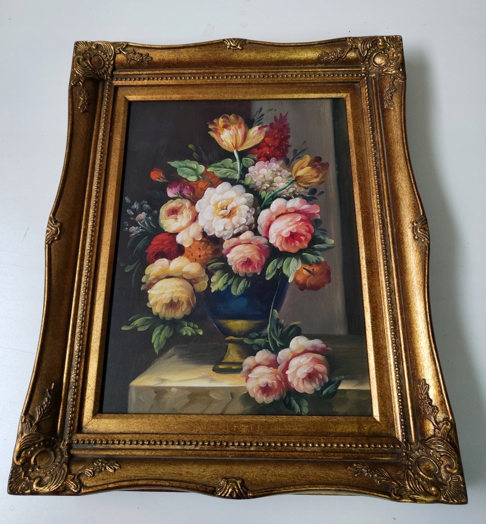 Стильна картина маслом Полотно Букет квітів Золота дерев'яна рамка 54 x 44 KL
