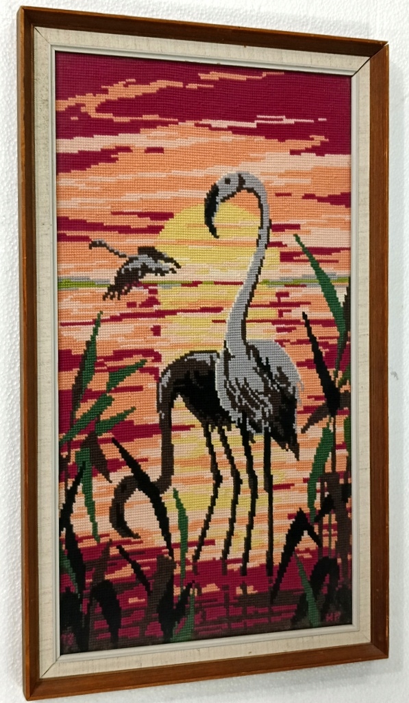 Стильна картина плетений гобелен Фламінго дерев'яна рамка 58 х 34,5 см КЛАС