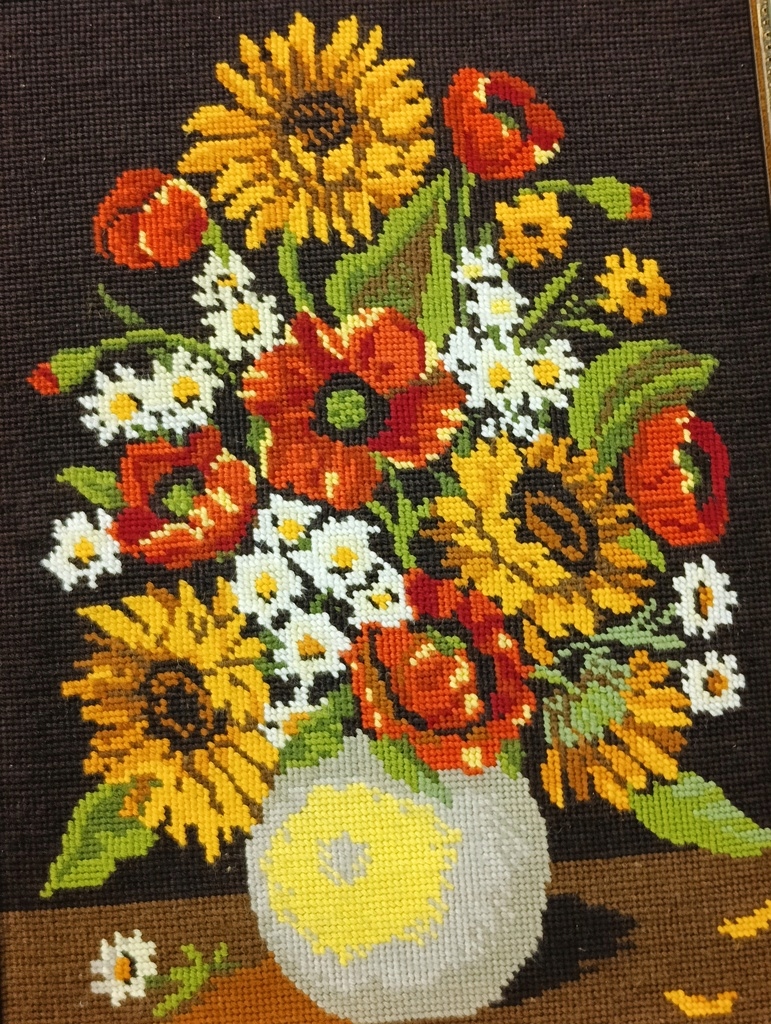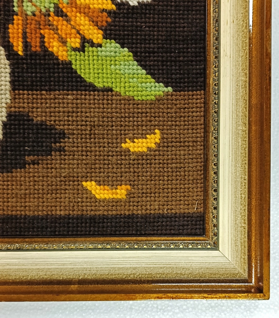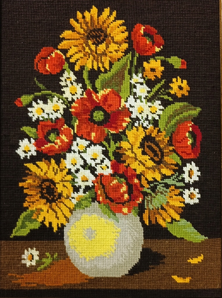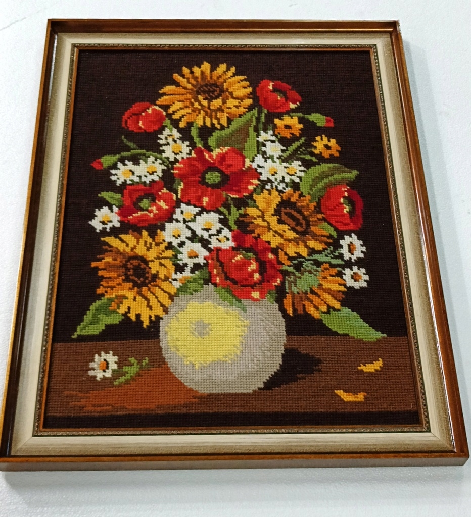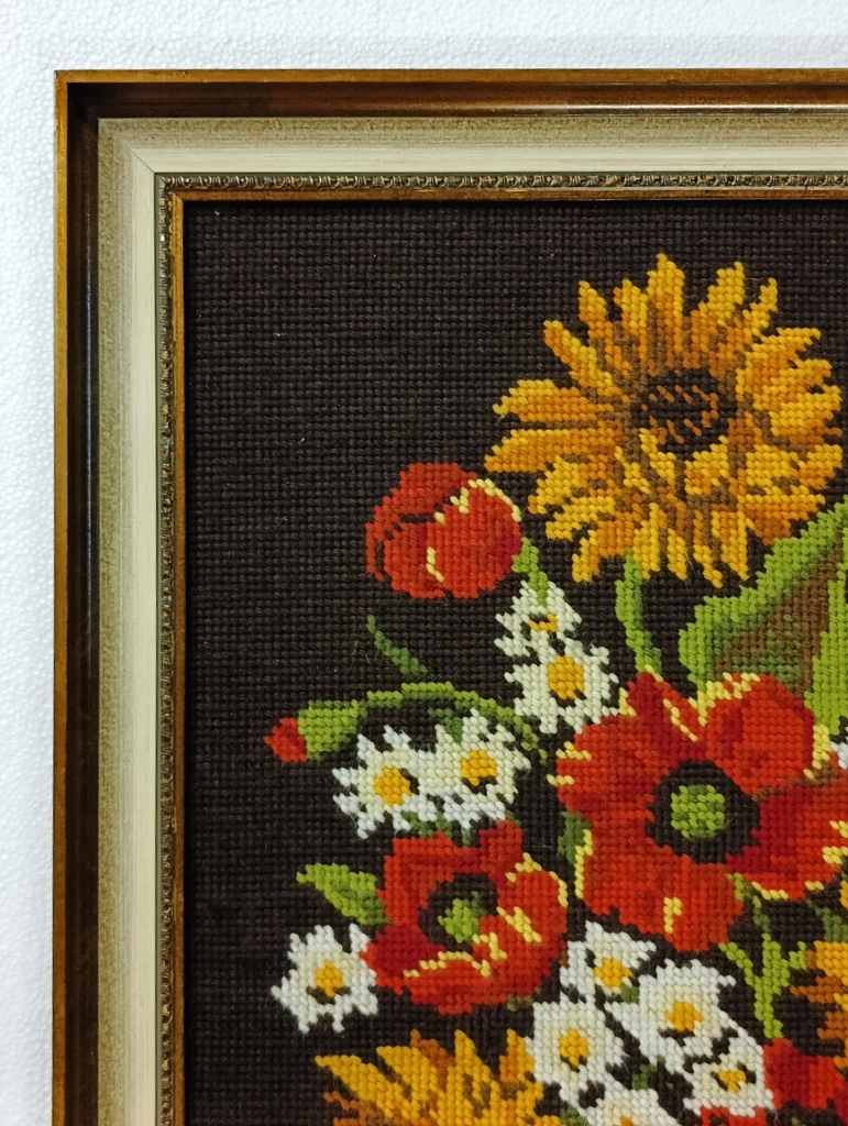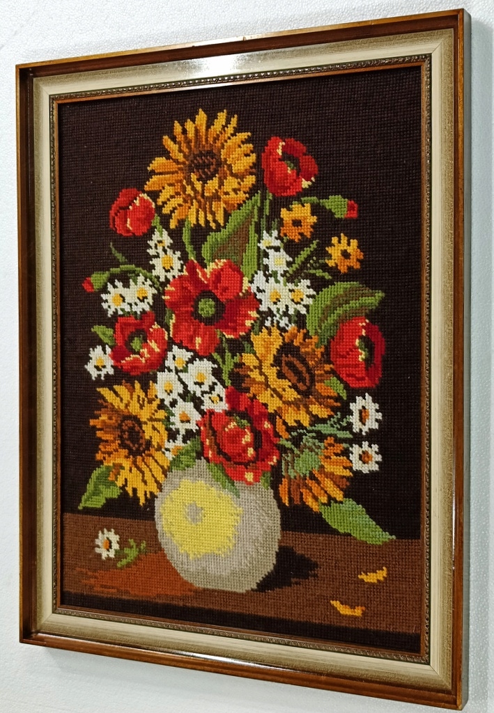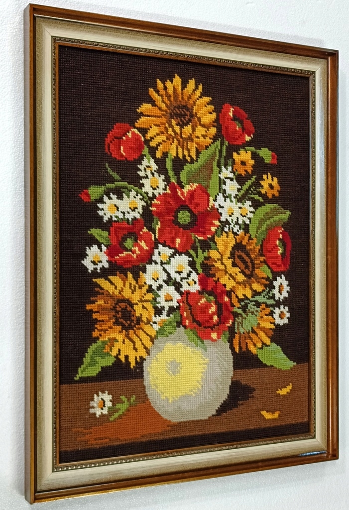 Стильна картина Плетений гобелен Квіти у вазі в золотій рамі 84 х 64 см