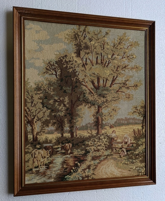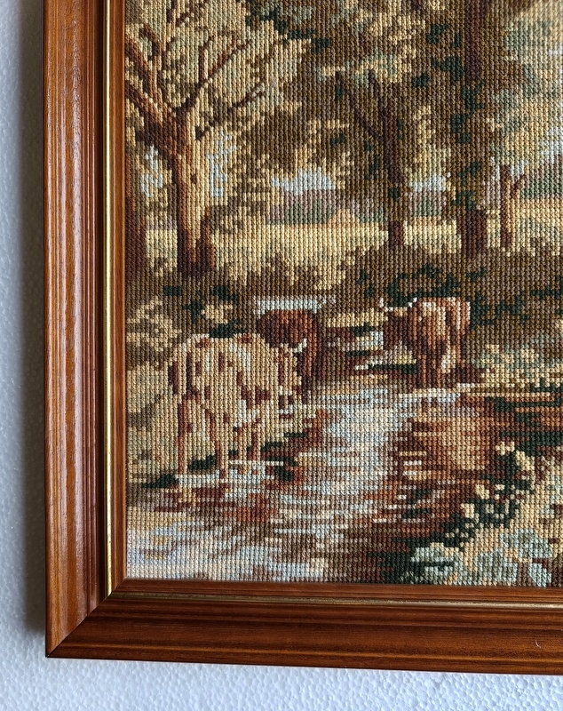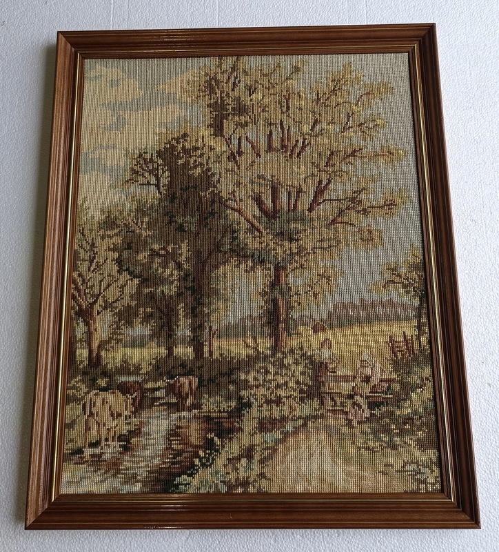 Стильна картина Плетений гобелен Пейзаж Золота рамка 69 х 57 см
