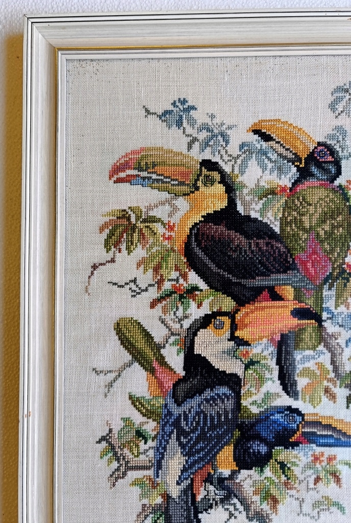 Стильна картина Плетений гобелен Тукан Рама Дерево 60 х 45 см КЛАС