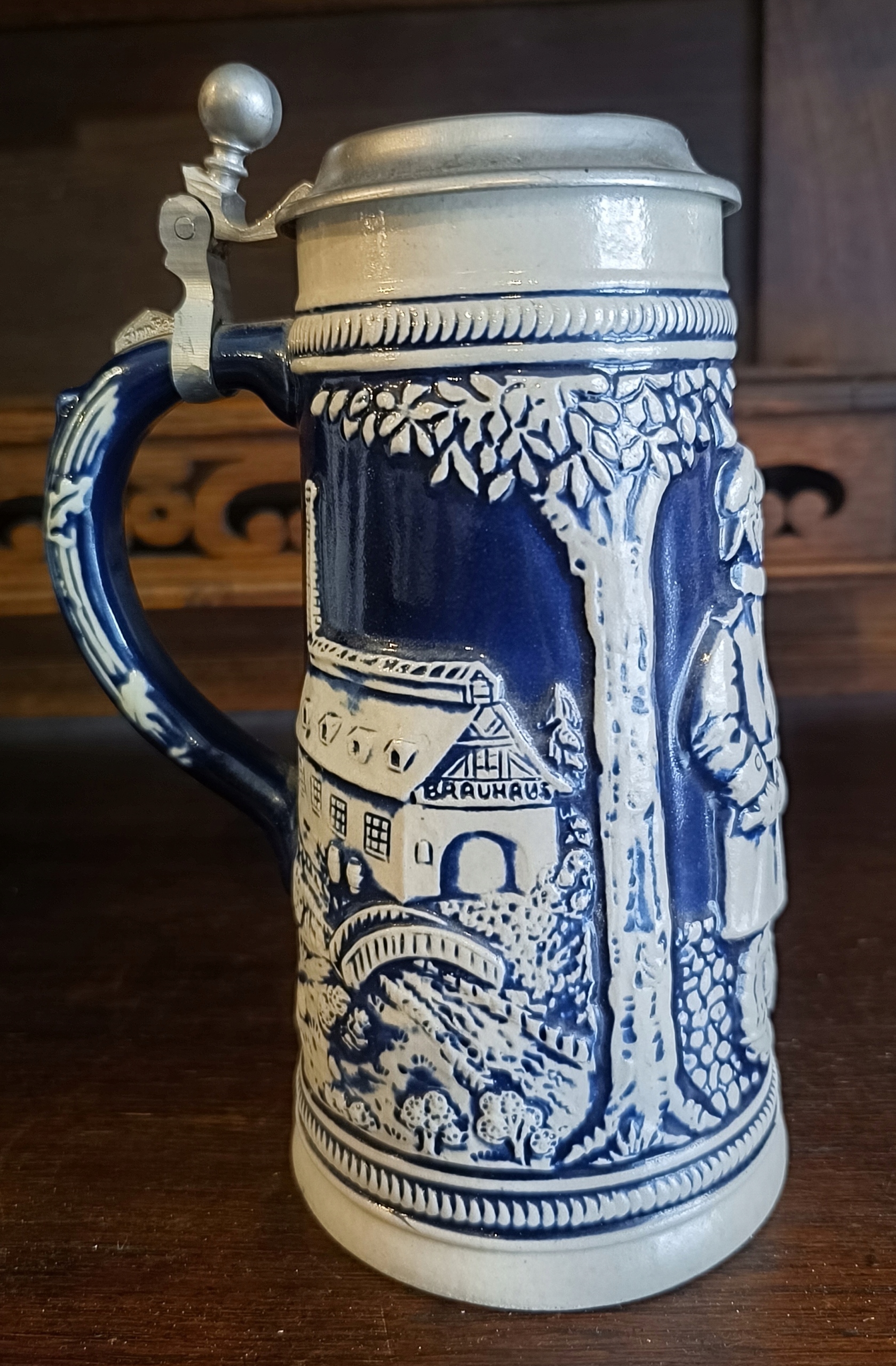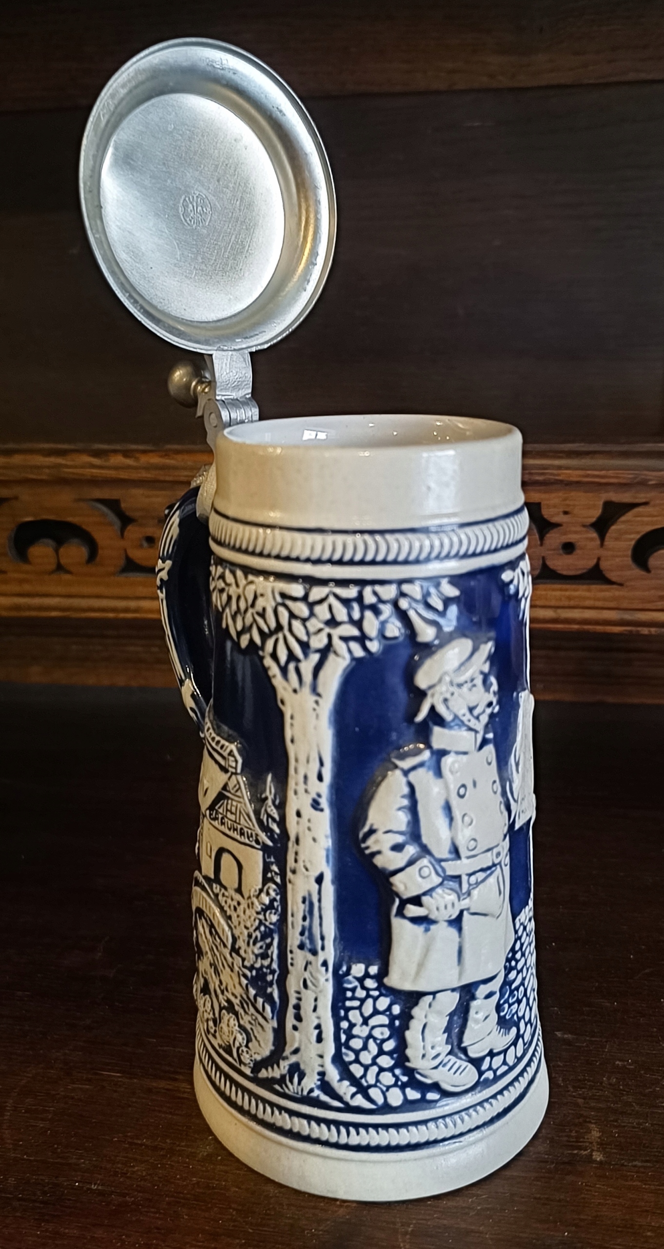 Представляем Вам керамическую пивную кружку с закрытой жестяной крышкой. Б/у в хорошем состоянии.