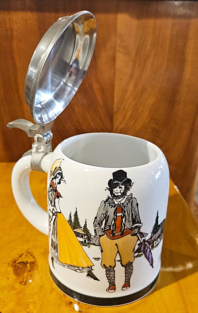Представляем Вам керамическую пивную кружку с закрытой жестяной крышкой. Б/у и в хорошем состоянии. Фантастические узоры и цвета – единственные преимущества этого замечательного предмета, который будет служить в каждом доме, а также выполнять декоративную функцию.