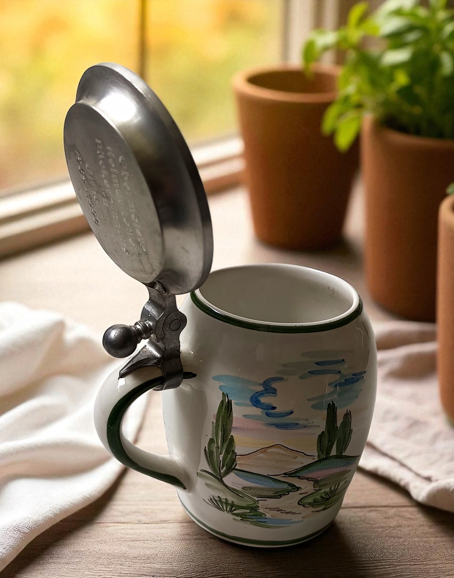 Стильная керамическая кружка с цинковой крышкой, немецкое пиво