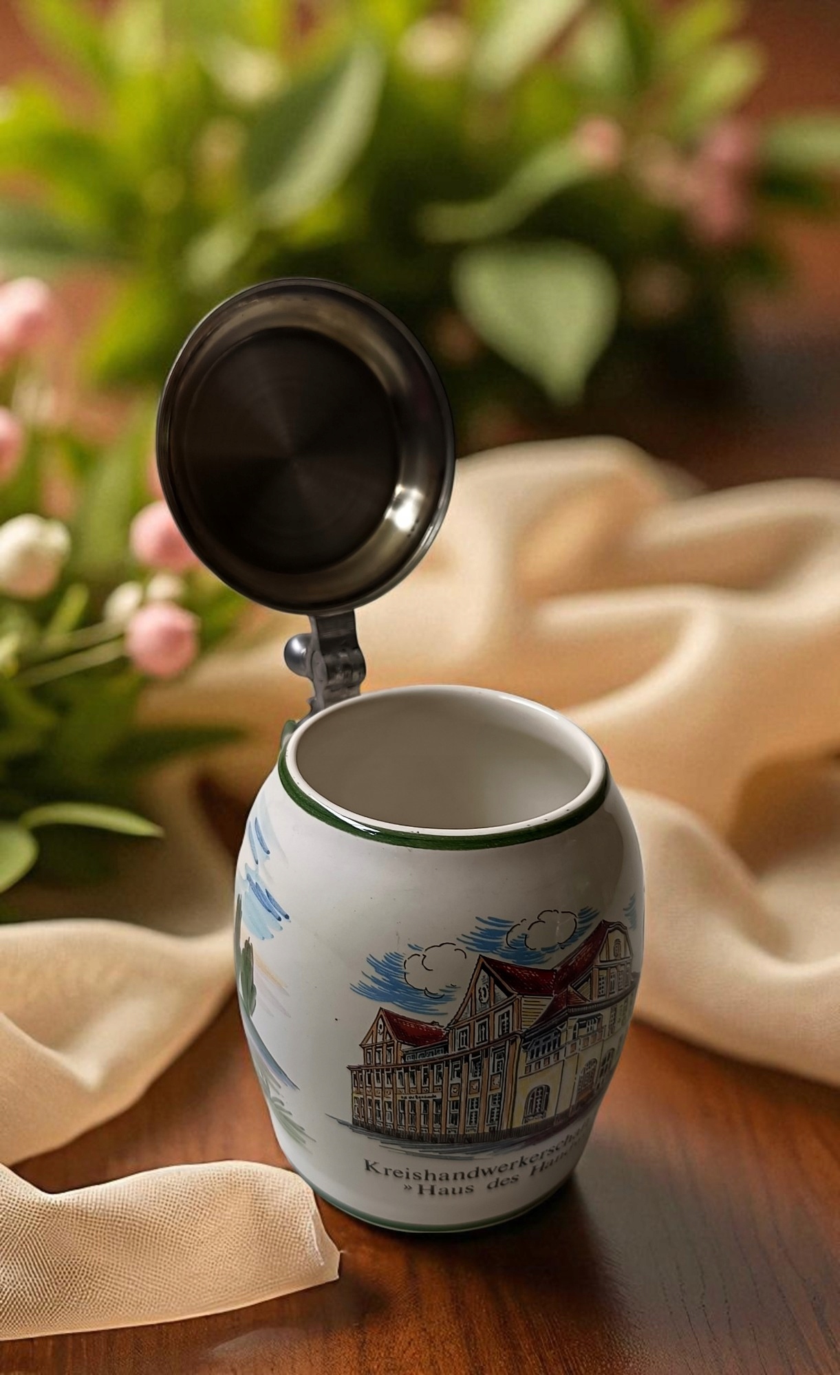 Пивная кружка Германии h1> представляет вам пивной кружку с закрытым цинковым крышкой. Используется в хорошем состоянии. Фантастические узоры с цветами - это самые преимущества этой замечательной копии, которая будет служить в каждом домохозяйстве и одновременно выполняет декоративную функцию. h1> Я рекомендую в качестве утилиты или декоративного ценителей золотого напитка !!! Ширина 13,5 см. kl-186