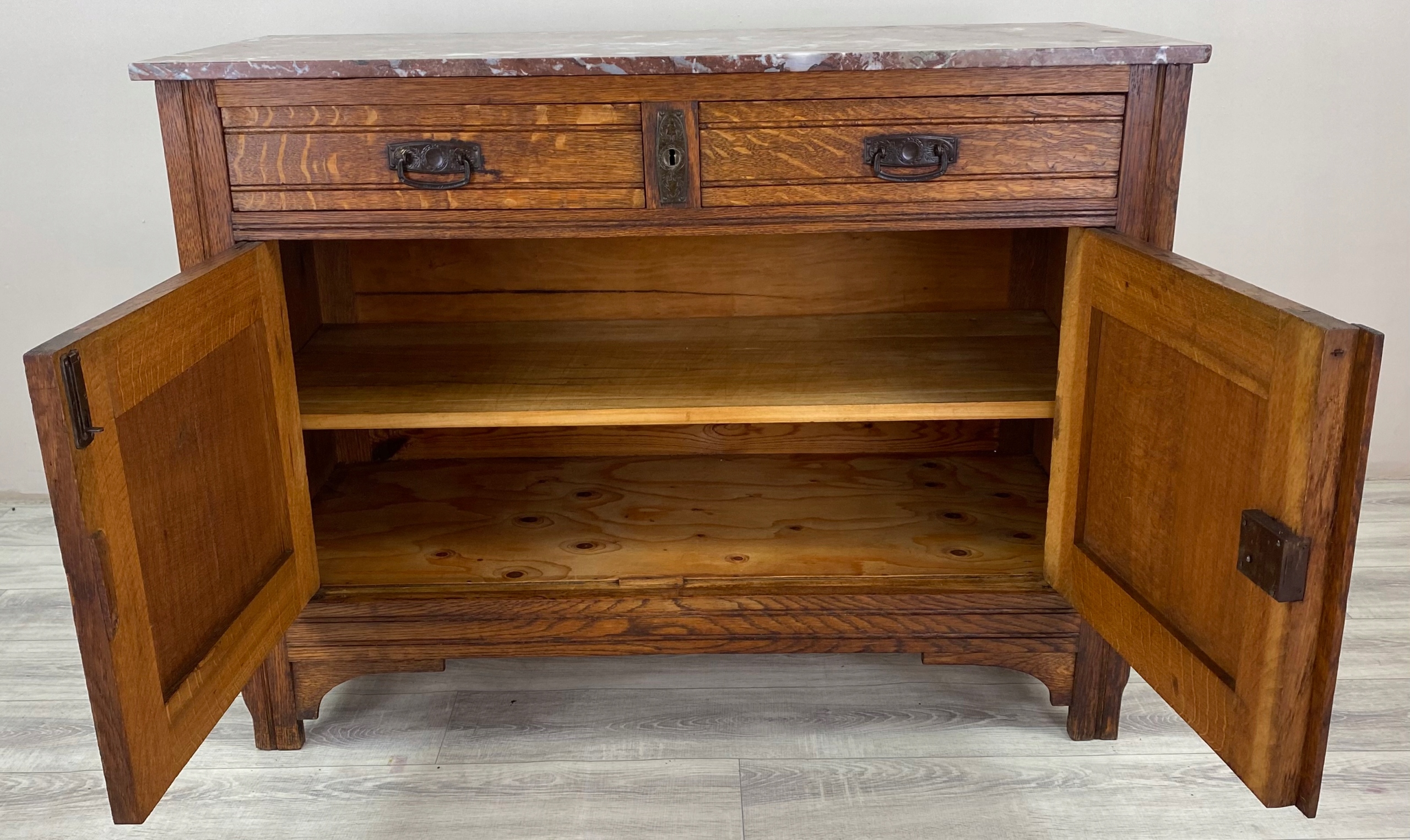 Шкаф имеет два фронта наклона. Внутри полки. Кроме того, два ящика.