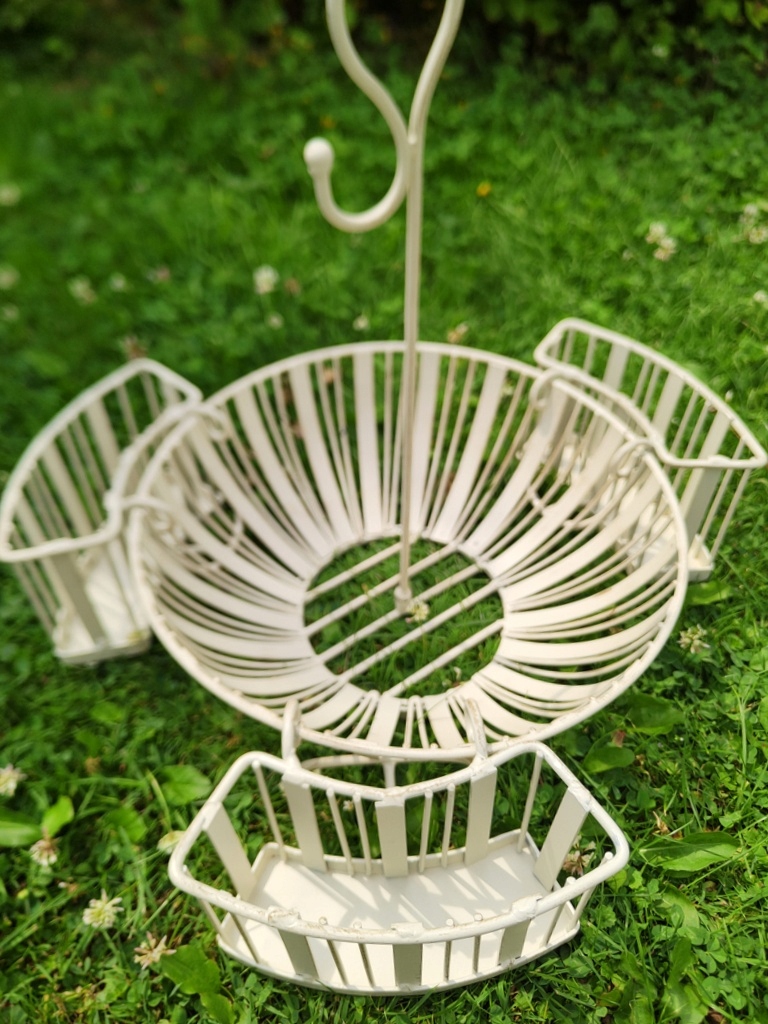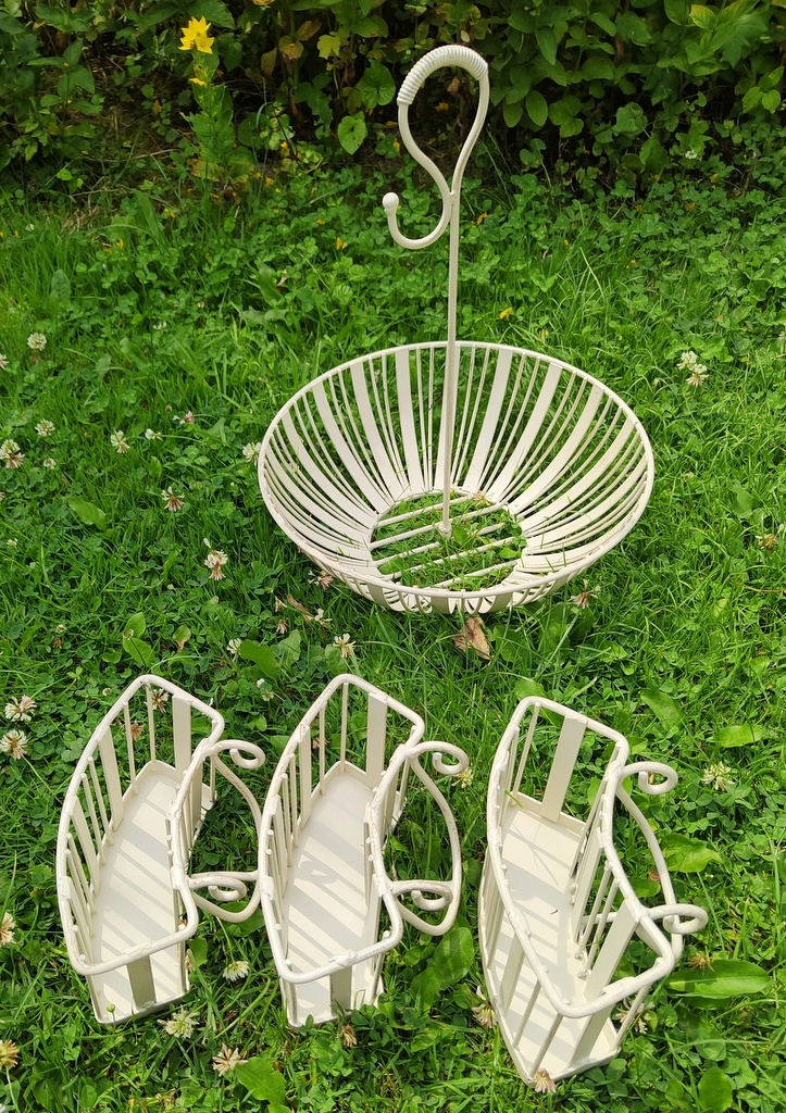 Размеры: высота. 38 см, диаметр корзины 30 см, высота корзины 10,5 см, боковые корзины: высота 10,5 см, длина 18 см, ширина 6 см.