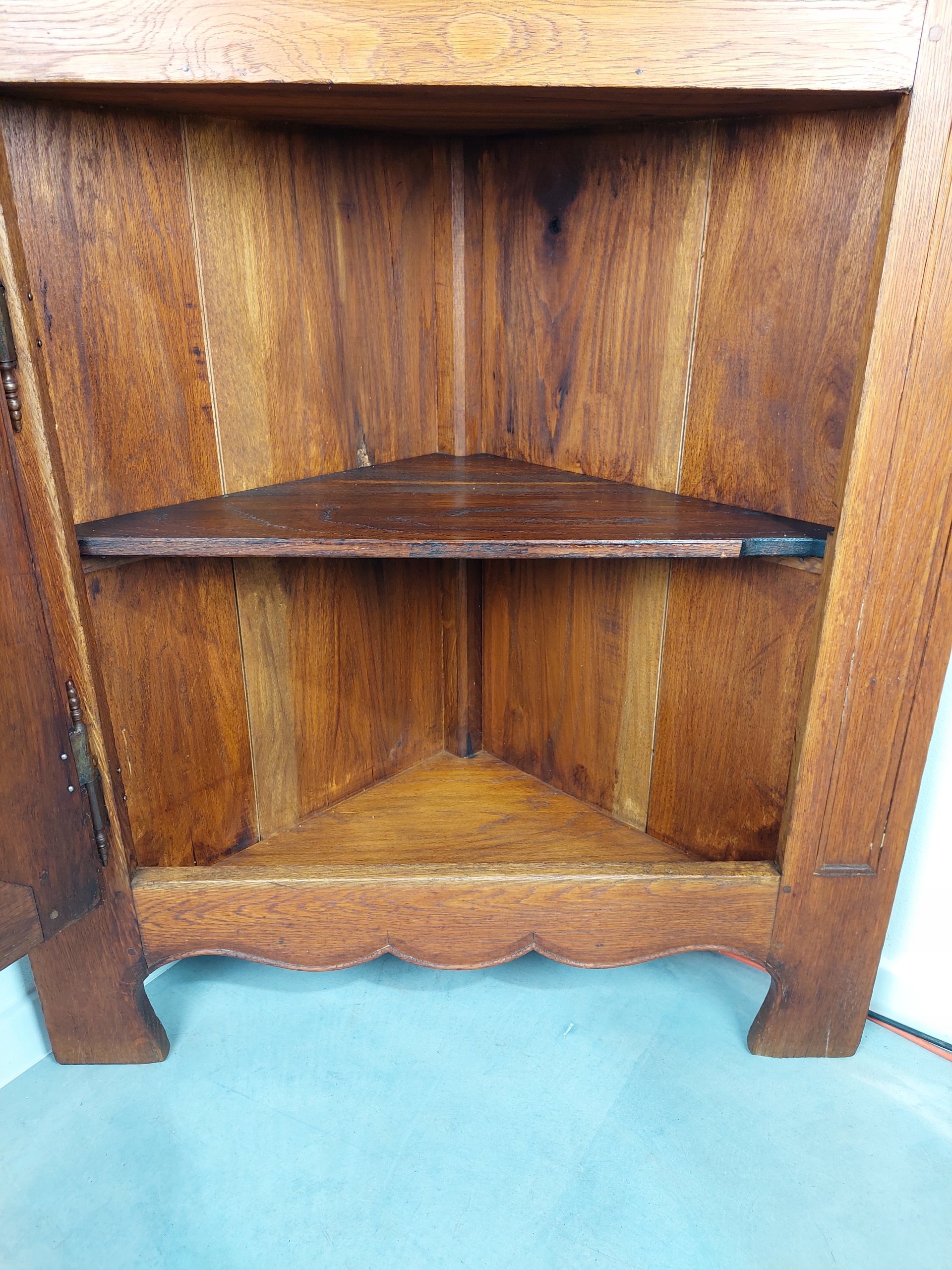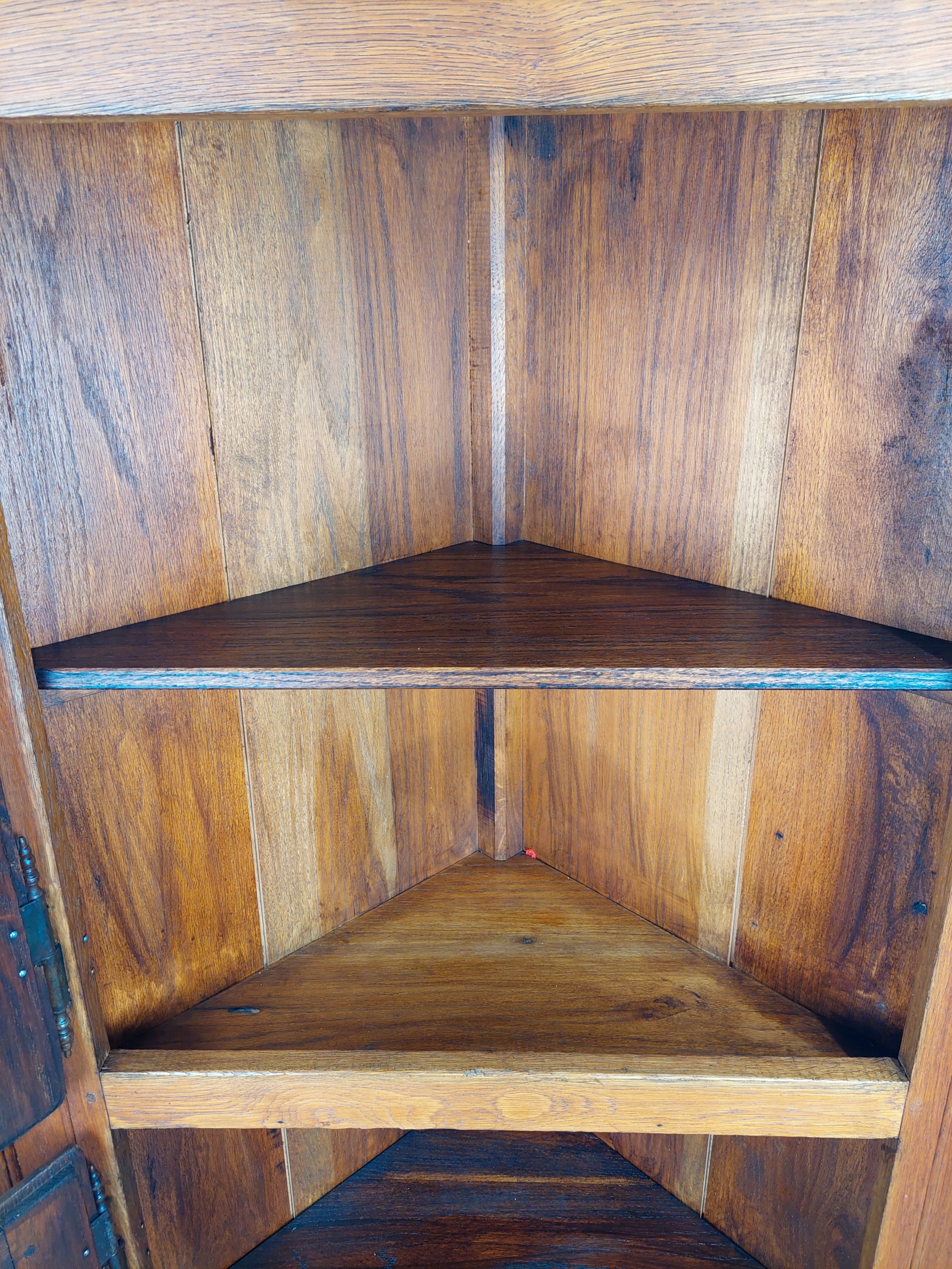 Стильная угловая витрина из голландского дуба - стеклянная полка, импортированная из Нидерландов, рабочие замки, ключ в комплекте. Его можно использовать как библиотеку, поскольку все полки деревянные, а вся мебель изготовлена из массива дуба (очень тяжелого и прочного). Шипообразная конструкция с чугунной фурнитурой. Мебель имеет типичные следы использования. Подробные фото ниже.