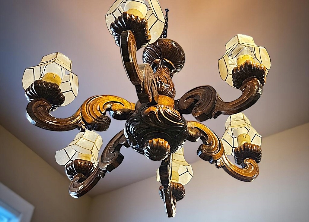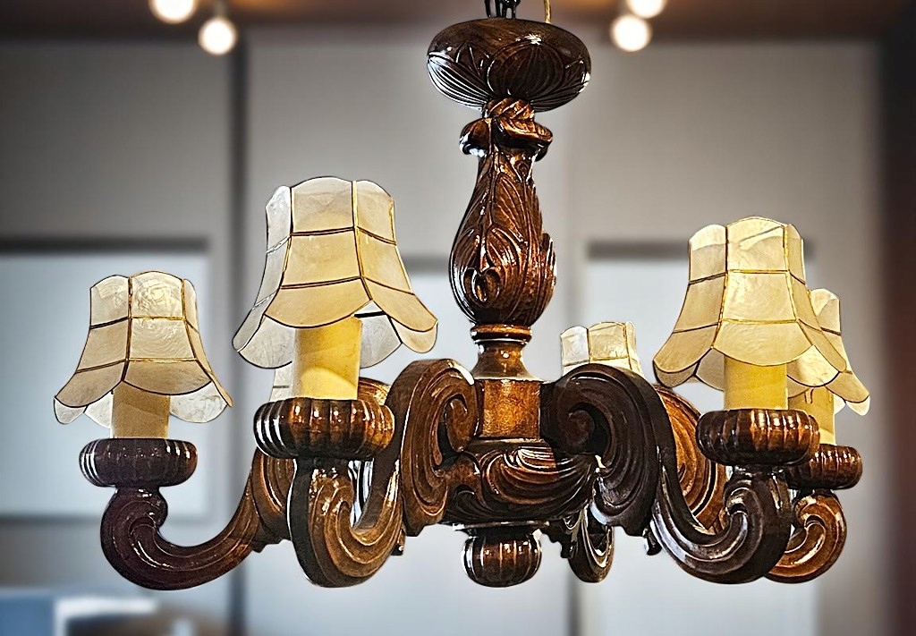 Сделано около 10 лет назад из Вуда - он был доставлен из Нидерландов. h1> Лампа имеет 6 -х точку света для лампы с потоком e -27 (так -то -назвученное большую резьбу) h1>