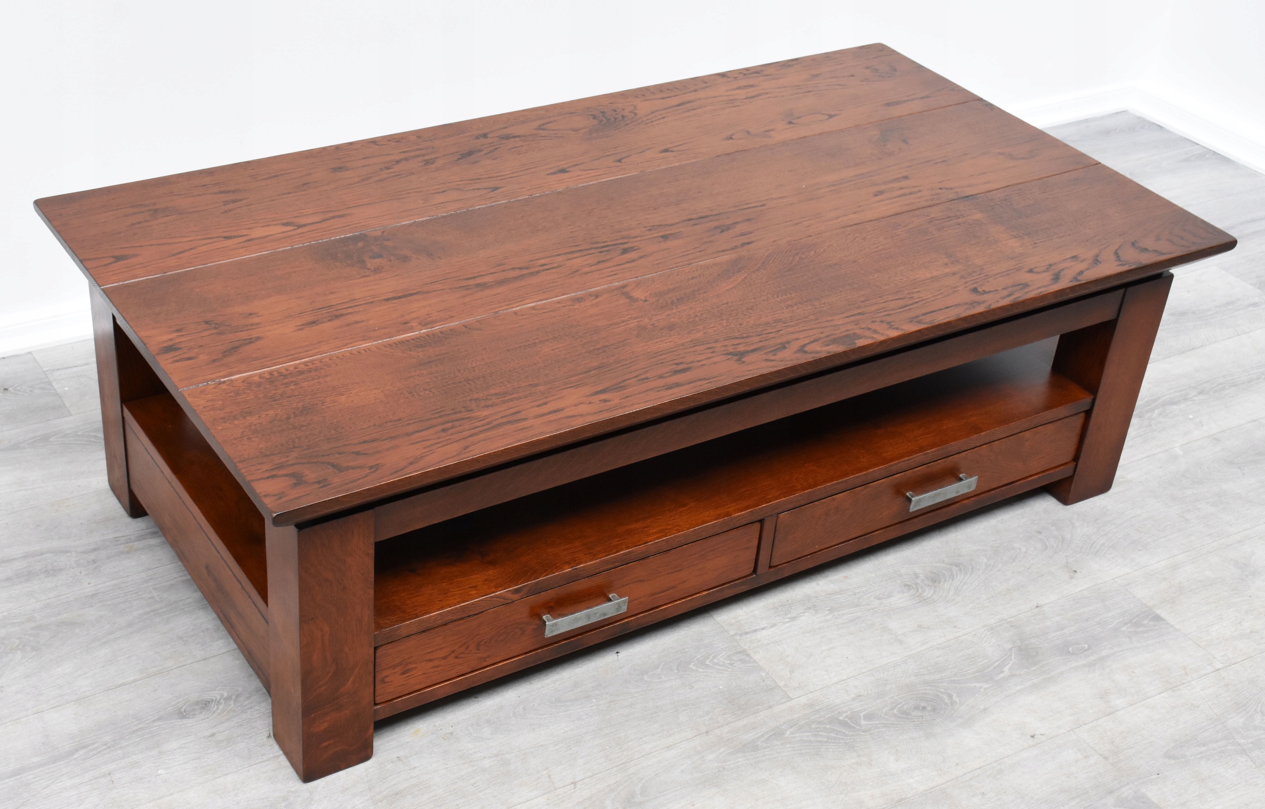 СТИЛЬНАЯ МАССИВНАЯ ДУБОВАЯ СКАМЬЯ С ЯЩИКАМИ, h44x140,5x75см