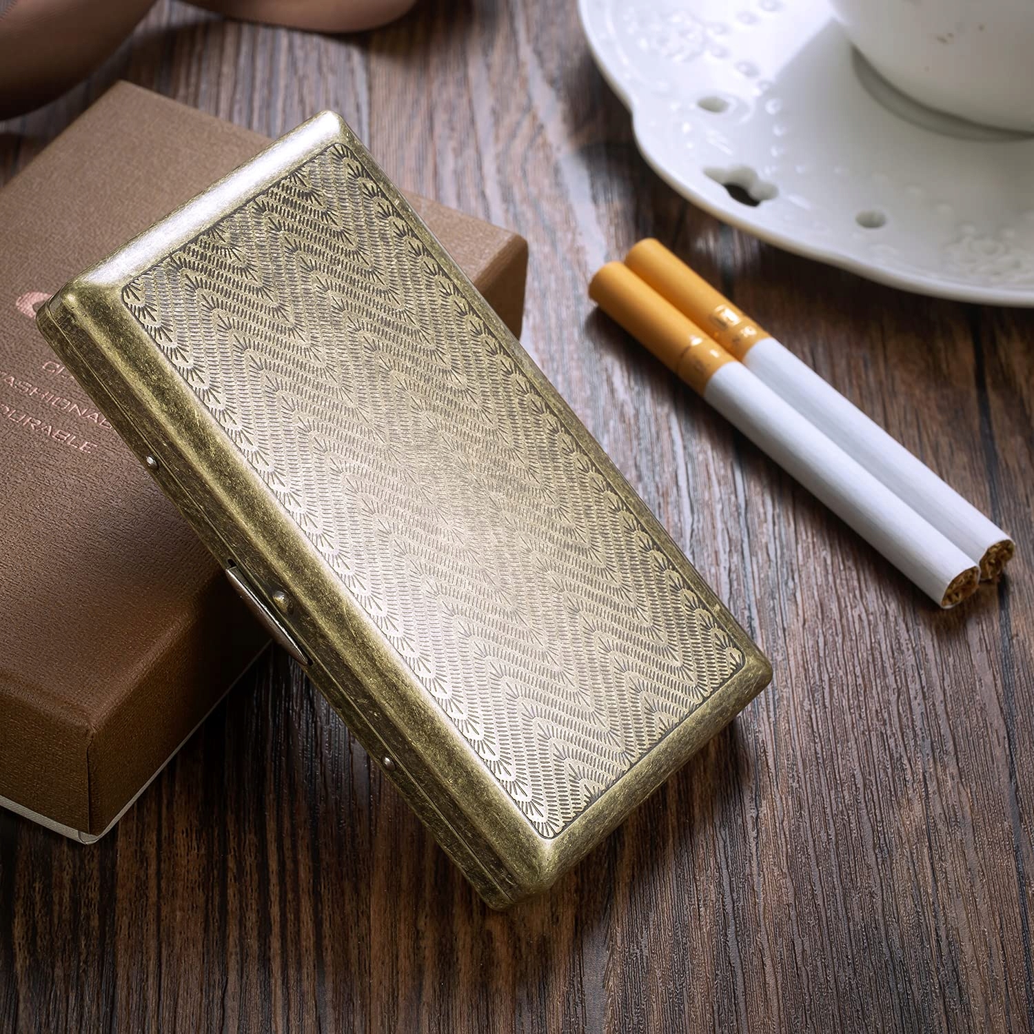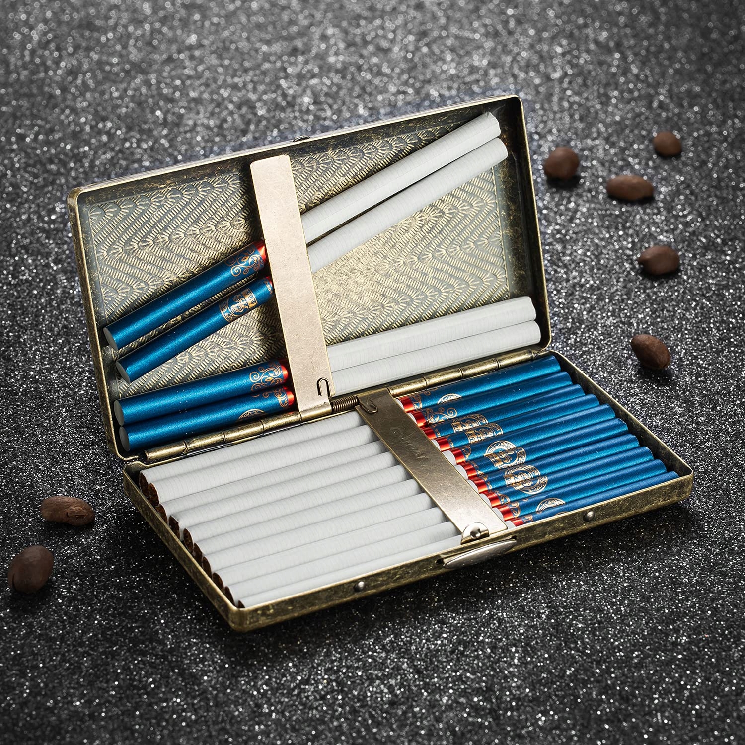 Материал: металл, максимум на 20 тонких сигарет (100 мм), максимум на 12 обычных длинных сигарет (нормального размера). Благодаря клапану чехол можно легко открывать и закрывать. Портсигар весит всего около 57 г и имеет следующие размеры: 103 мм/60 мм/17 мм (длина/ширина/высота). Вес: 111 г. Легкий и маленький, поэтому его легко и удобно носить с собой, помещается в любую сумочку Хорошие подарки: Этот практичный компаньон необходим каждому курильщику и станет отличным подарком. Подарочная коробка: Портсигар с подарочной коробкой, выглядит очень качественно. Сигаретные пачки выдерживают внешнее давление и защищают сигареты от повреждений. Экстравагантным способом вы можете защитить свои сигареты от грязи, перекручиваний и влаги, обеспечив их безопасность и элегантность.